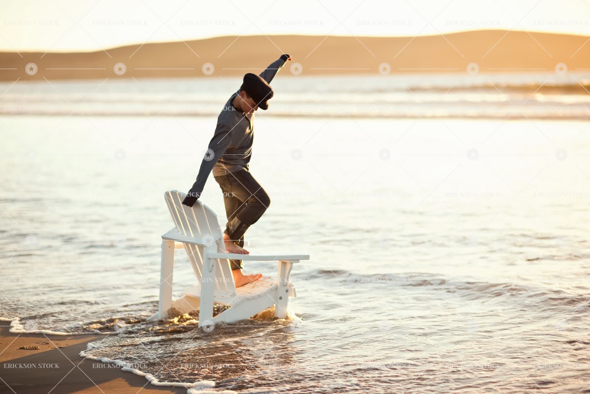 Tags adirondack chair, alone, balance, beach, blue jeans, boy, cap, casual clothes, caucasian, chair, child, coast, copy space, denim, dusk, elementary age, evening, full length, happiness, happy, hat, hats, high tide, hill, hills, horizontal, jeans, kid, kids, leisure, leisure activities, leisure activity, look down, looking down, male, motion, negative space, ocean, oceans, one person, outdoor, outdoor chair, outdoor chairs, outdoors, outside, people, person, physical geography, Playful, Playing, pre-adolescent, pre-adolescents, Pre-teen, pre-teens, preteen, preteens, recreation, recreational pursuit, recreational pursuits, scenery, scenic, scenics, sea, seas, seaside, shore, shoreline, shores, solitude, stand, standing, stands, sundown, sunset, surf, tidal, tide, tween, twilight, wait, waiting, water, wave, waves