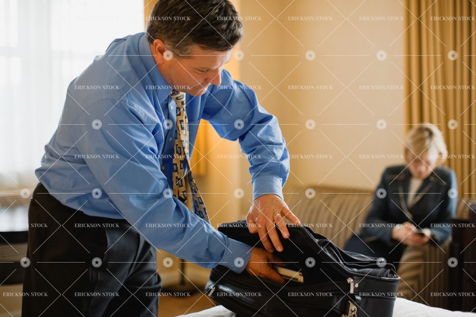 Tags accommodation, adult, business, business man, business travel, business woman, caucasian, colleague, executive, executives, female, horizontal, hotel, hotel room, hotel rooms, hotels, indoor, indoors, inside, luggage, male, man, mature adult, mid adult, people, person, selective focus, shirt, shirt and tie, suitcase, suitcases, three quarter length, tie, tourist destination, tourist destinations, travel, travel destination, travel destinations, two people, unpack, unpacking, unpacks, well-dressed, woman
