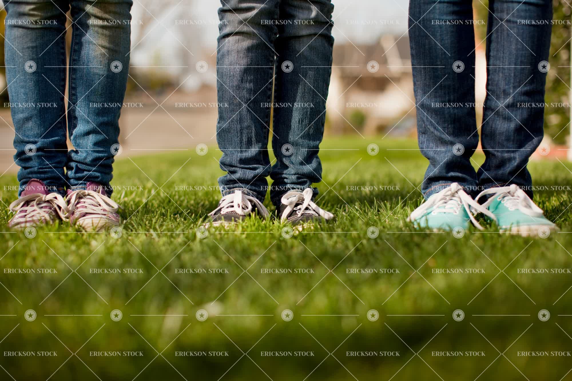 Tags blue jeans, casual clothes, copy space, cropped, day, denim, grass, grassy, horizontal, human leg, jeans, leg, legs, negative space, outdoor, outdoors, outside, part of, person, selective focus, sneakers, sports shoes, trainers, unrecognisable people, unrecognisable person, unrecognizable people, unrecognizable person