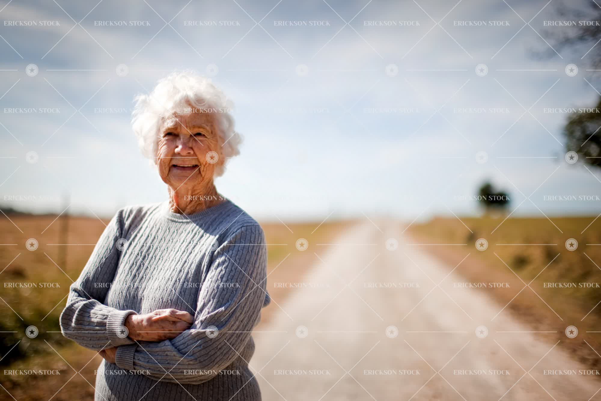 Tags adult, arms crossed, caucasian, cheerful, copy space, country, countryside, day, delight, dirt road, elderly, enjoyment, Eye contact, female, folded arms, gray hair, grey hair, half length, happiness, happy, horizontal, joy, joyful, look at camera, looking at camera, mature adult, negative space, old, one person, outdoor, outdoors, outside, path, paths, people, person, portrait, Portraits, road, roads, rural, selective focus, senior adult, smile, smiling, street, streets, waist up, woman