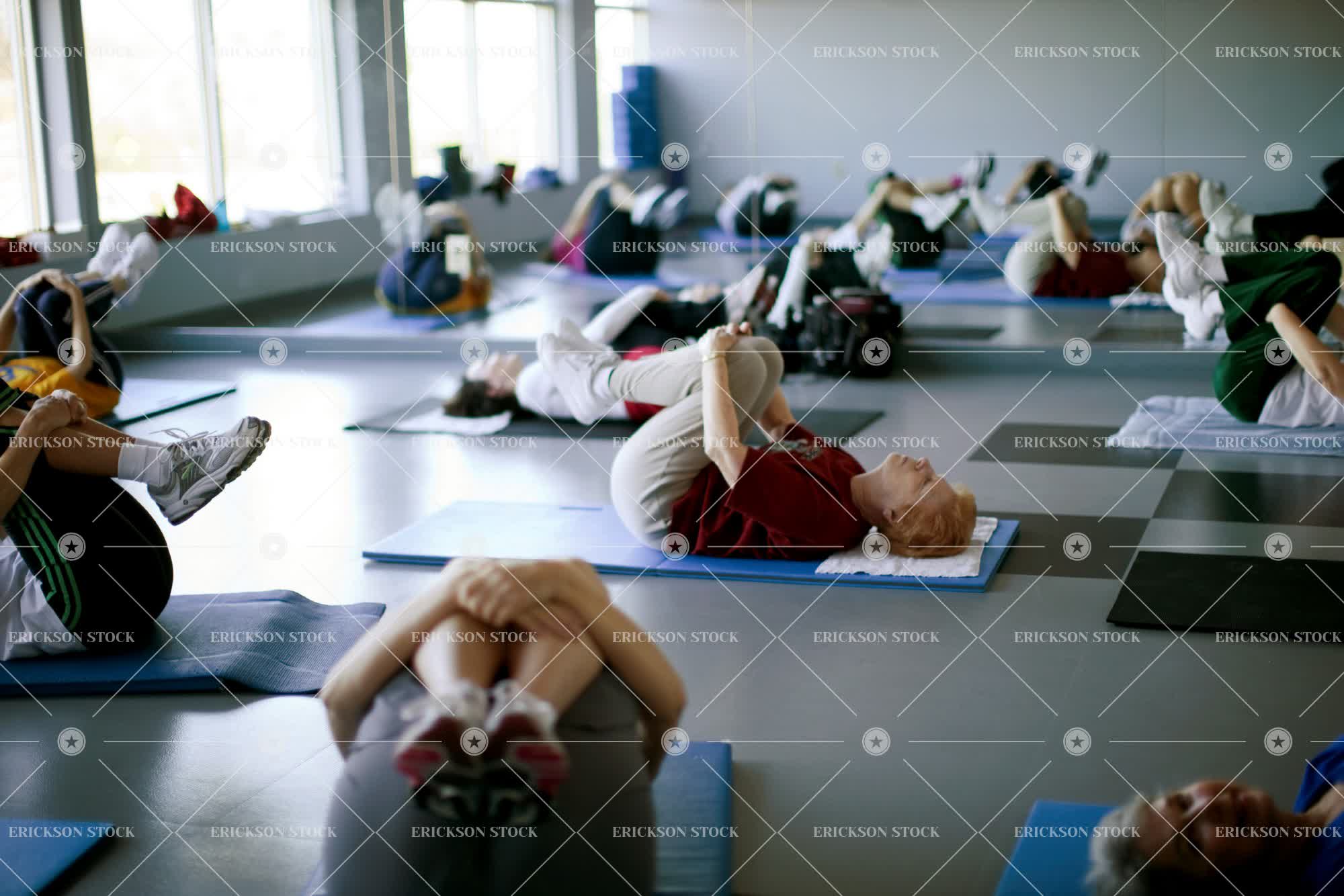 Tags active senior, adult, caucasian, class, cropped, day, exercise, exercise class, exercise classes, exercises, exercising, female, fit, fitness, full length, group, gym, gym class, gym classes, gymnasium, gymnasiums, gyms, health, healthy, horizontal, indoor, indoors, inside, large group of people, leisure, leisure activities, leisure activity, lie down, Lying down, part of, people, person, recreation, recreational pursuit, recreational pursuits, relax, Relaxation, relaxed, relaxes, relaxing, retirement, selective focus, senior adult, sport, Sports, stretch, stretches, stretching, vitality, woman