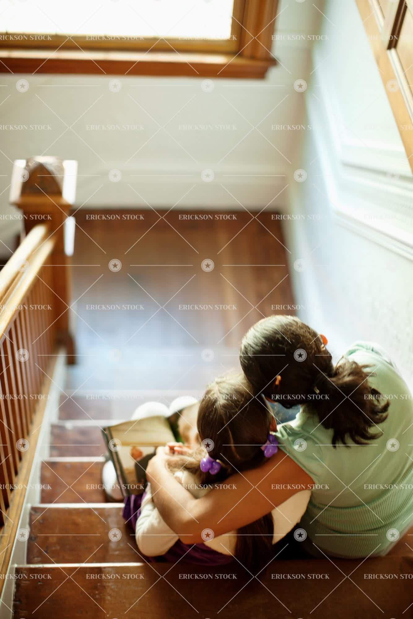 Tags adult, affectionate, arm around, book, child, close, copy space, copy space top, daughter, day, family, female, girl, girls, high angle, high angle view, indoor, indoors, inside, kid, kids, love, loving, mom, mother, mum, negative space, negative space top, parent, parents, people, person, picture book, picture books, reading, reading aloud, reading stories, reading story, sit, sitting, staircase, stairs, stairwell, stairwells, step, steps, storytelling, together, togetherness, two people, vertical, woman