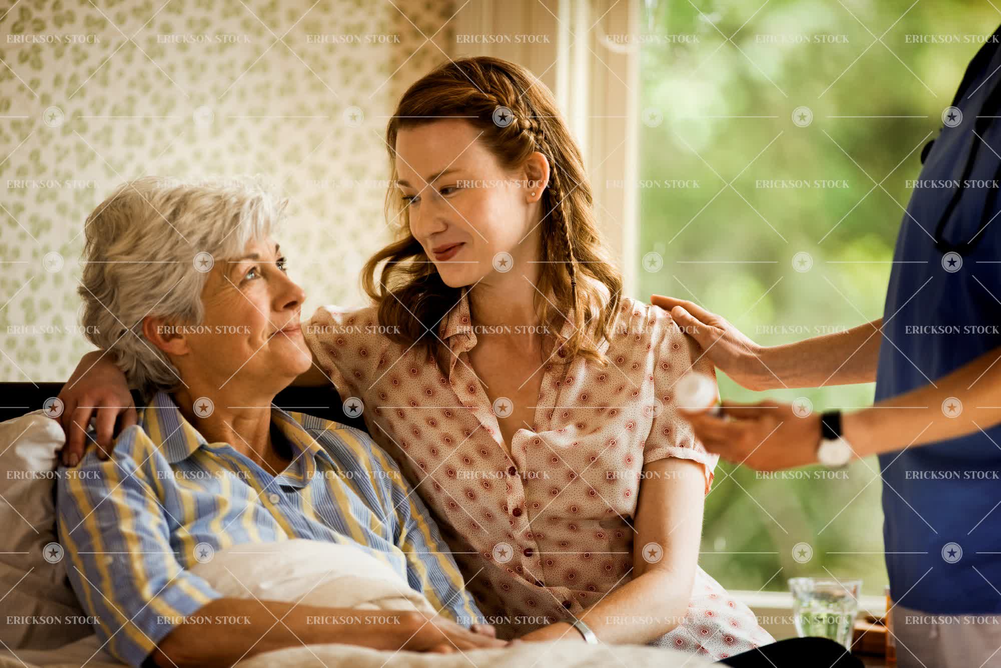 Tags adult, affectionate, aging, arm, arm around, bed, bedroom, care, caucasian, child, conversation, cropped, daughter, day, elderly, embracing, family, female, half length, happiness, happy, health, healthcare, healthcare and medicine, horizontal, hug, hugging, hugs, human arm, ill, illness, indoor, indoors, inside, listen, listened, listening, listens, look up, looking up, love, loving, mature adult, medical condition, medicine, mid adult, midsection, mom, mother, mum, next to, nurture, Nurturing, old, parent, parents, part of, patient, patients, people, person, problem, problems, reassurance, reassure, selective focus, senior adult, sick, sickness, side by side, speak, speaking, speaks, Support, supportive, talk, talking, talks, three quarter length, together, togetherness, uniform, uniforms, waist up, woman, worried, worries, worry, young adult