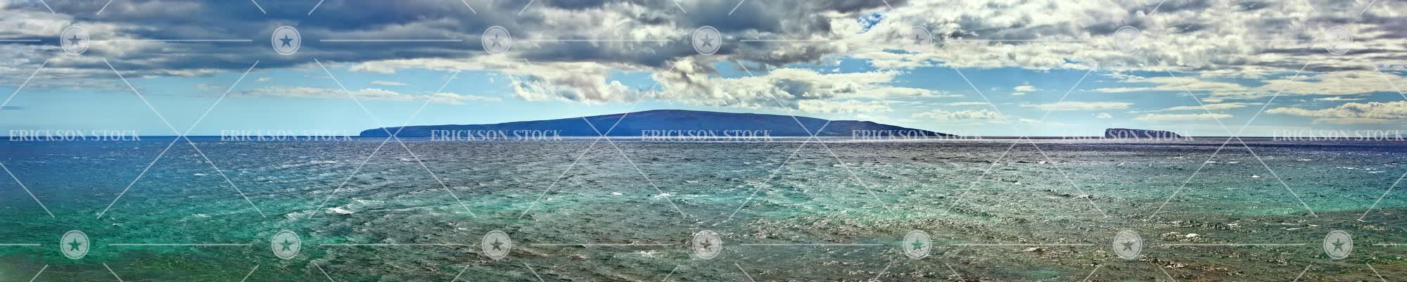 Clouds over rippling ocean water.