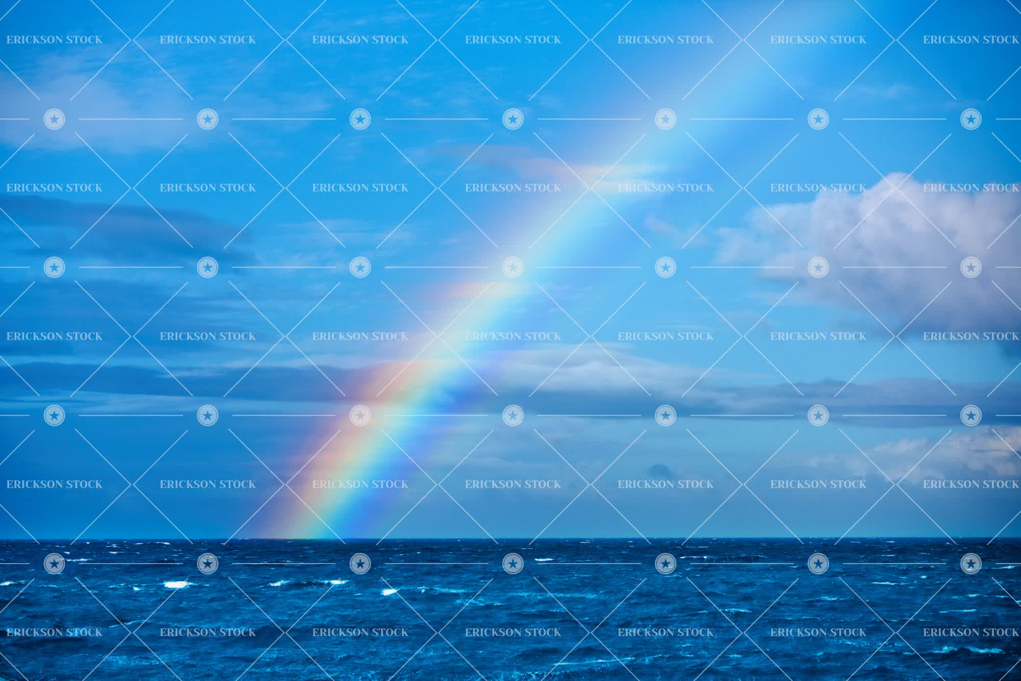 Rainbow arching over a choppy sea.