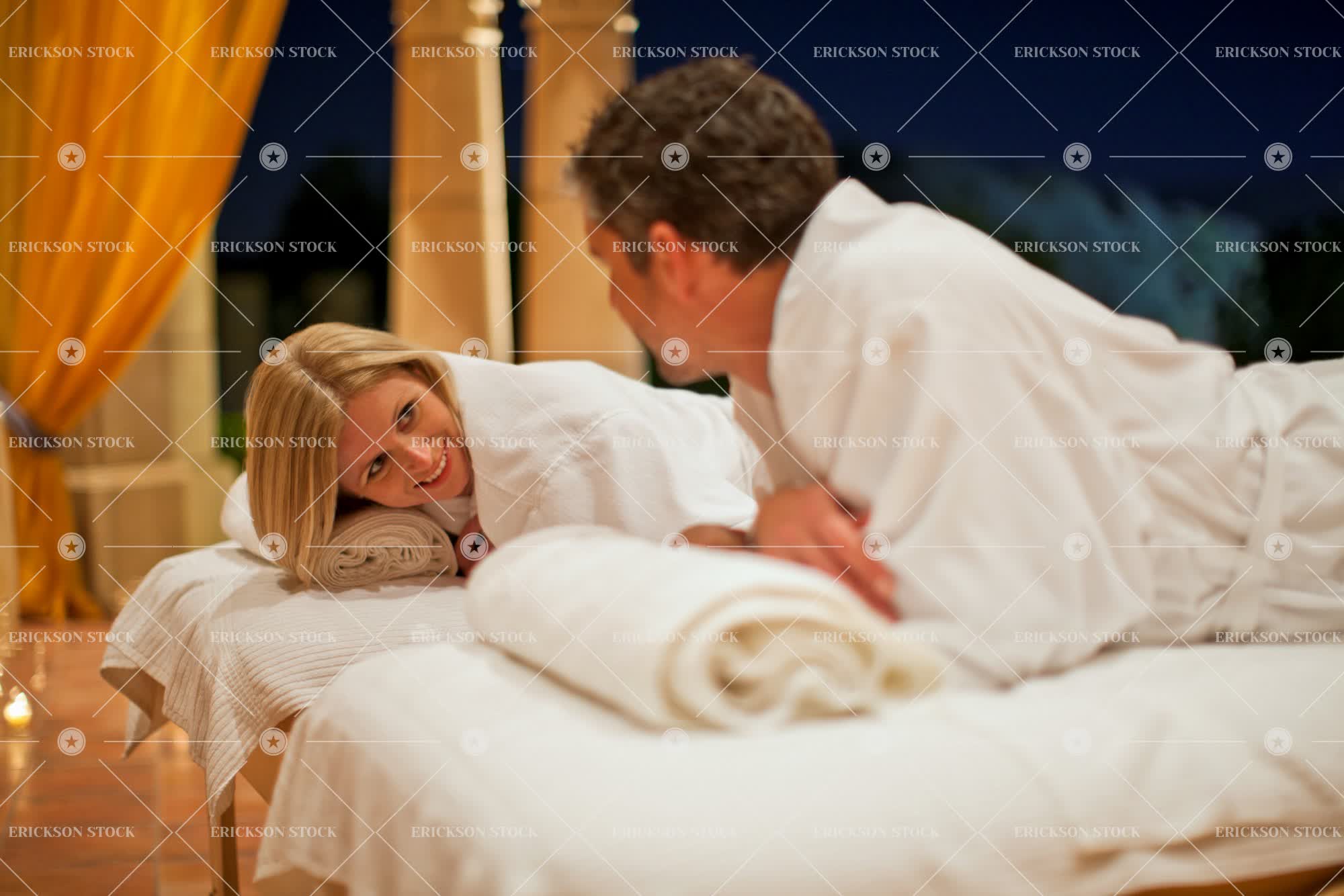Tags accommodation, adult, alternative therapy, bathrobe, blond, brunette, caucasian, cheerful, couple, delight, dressing gown, enjoyment, face to face, facing each other, female, Fun, half length, happiness, happy, having fun, health spa, heterosexual, heterosexual couple, heterosexual couples, holiday, holidays, horizontal, hotel, hotels, Husband, husband and wife, husbands, indoor, indoors, indulgence, indulgent, indulging, inside, joy, joyful, leisure, leisure activities, leisure activity, lie down, lie on front, looking at each other, love, loving, luxurious, luxury, Lying down, lying on front, male, man, marriage, married, massage, massage table, massage tables, massages, massaging, mature adult, mid adult, pampering, pampers, partner, patio, patios, people, person, recreation, recreational pursuit, recreational pursuits, relationship, relationships, Relaxation, relaxed, relaxes, relaxing, resort, resorts, robe, robes, selective focus, smile, smiling, spa, spa treatment, spa treatments, spas, spouse, spouses, together, togetherness, tourist destination, tourist destinations, tourist resort, tourist resorts, towhead, travel, travel destination, travel destinations, treatment, treatments, two people, Vacation, vacations, waist up, wellbeing, wellness, wife, wives, woman, young adult