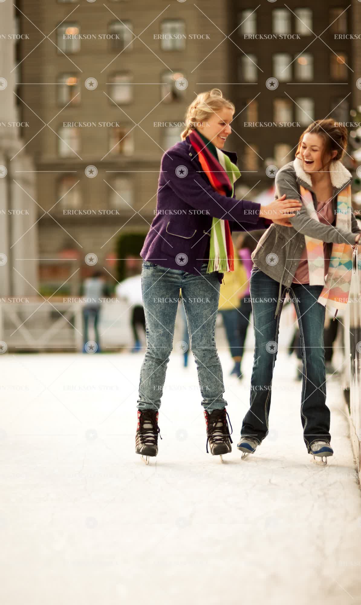 Tags adult, architectural exterior, architecture, assist, background people, balance, building, care, cheerful, cold, copy space, day, delight, enjoyment, exterior, female, friend, friends, friendship, full length, Fun, grin, grinning, grins, happiness, happy, having fun, ice, ice rink, ice rinks, ice skates, ice skating, joy, joyful, laughing, leisure, leisure activities, leisure activity, mid adult, outdoor, outdoors, outside, people, people in the background, person, recreation, recreational pursuit, recreational pursuits, scarf, scarves, selective focus, skate, skates, skating, smile, smiling, teenager, together, togetherness, toothy smile, tough, toughness, two people, vertical, warm clothes, warm clothing, woman, young adult