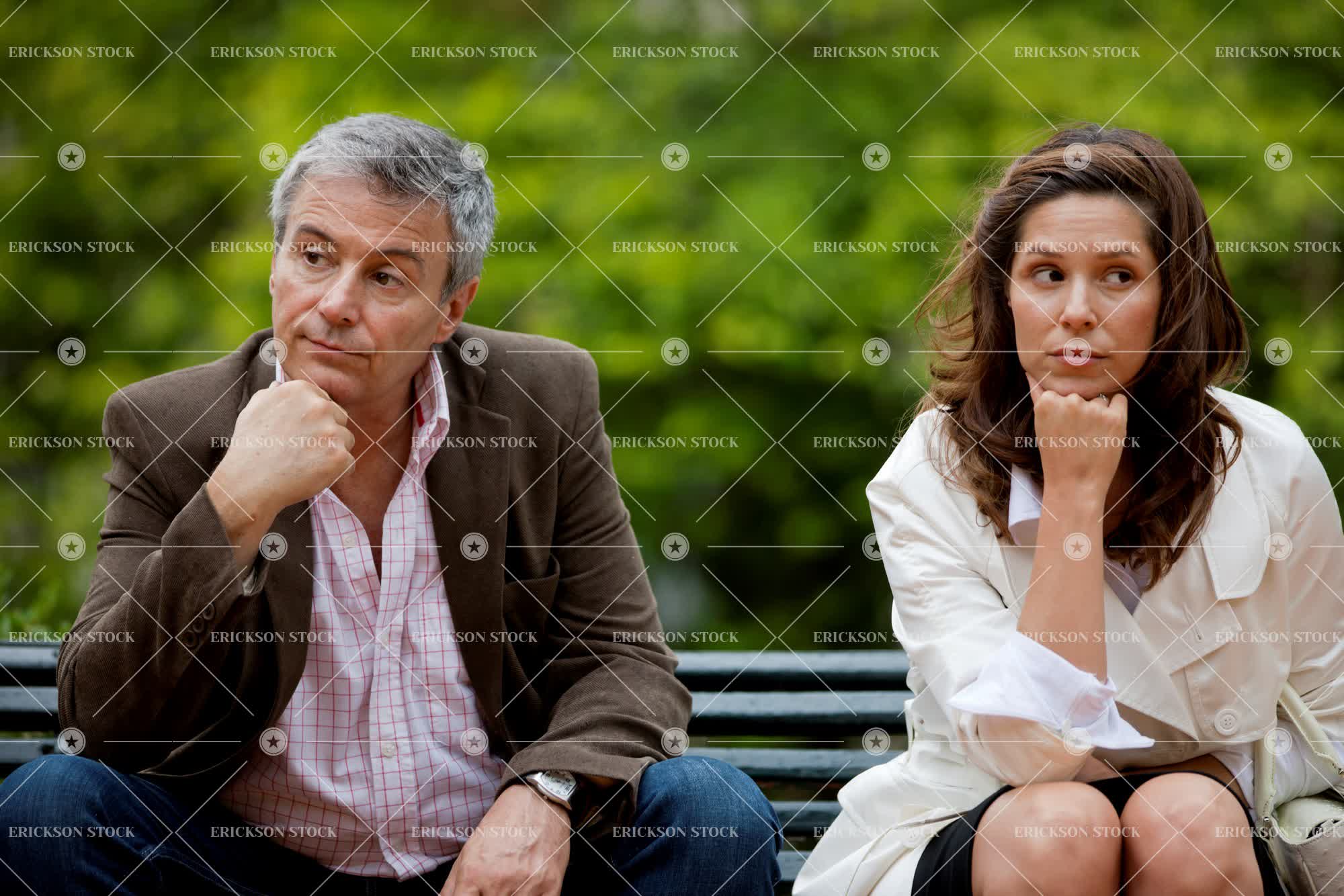 Tags adult, anxious, bench, caucasian, couple, day, defeat, disappointment, disgust, divide, fail, failure, female, focus on foreground, garden, gardens, gloomy, grey hair, greying hair, head on hand, head on hands, heterosexual, heterosexual couple, heterosexual couples, horizontal, male, man, mature adult, melancholy, mid adult, next to, outdoor, outdoors, outside, Park, park bench, park benches, parks, partner, people, person, public park, public parks, public space, public spaces, relationship, relationships, sad, sadness, seat, seats, selective focus, separate, separation, side by side, three quarter length, together, togetherness, trouble, troubled, two people, unhappiness, unhappy, wait, waiting, woman, worried, worries, worry, young adult