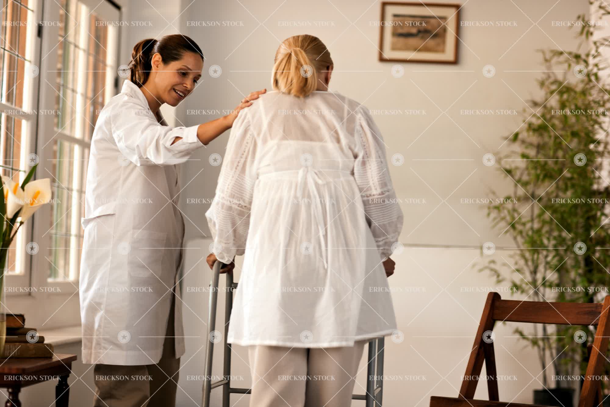 Tags adult, back, back view, caucasian, clinic, day, doctor, expert, expertise, experts, female, hand on shoulder, hands on shoulders, health, healthcare, healthcare and medicine, hospital, hospitals, ill, illness, indoor, indoors, inside, mature adult, md, medical, medical practitioner, medical practitioners, medicine, mid adult, patient, patients, people, person, physician, physicians, problems, rear, rear view, selective focus, sick, sickness, specialist, specialists, three quarter length, two people, vertical, walker, walkers, walking frame, walking frames, white coat, white coats, window, windows, woman, young adult