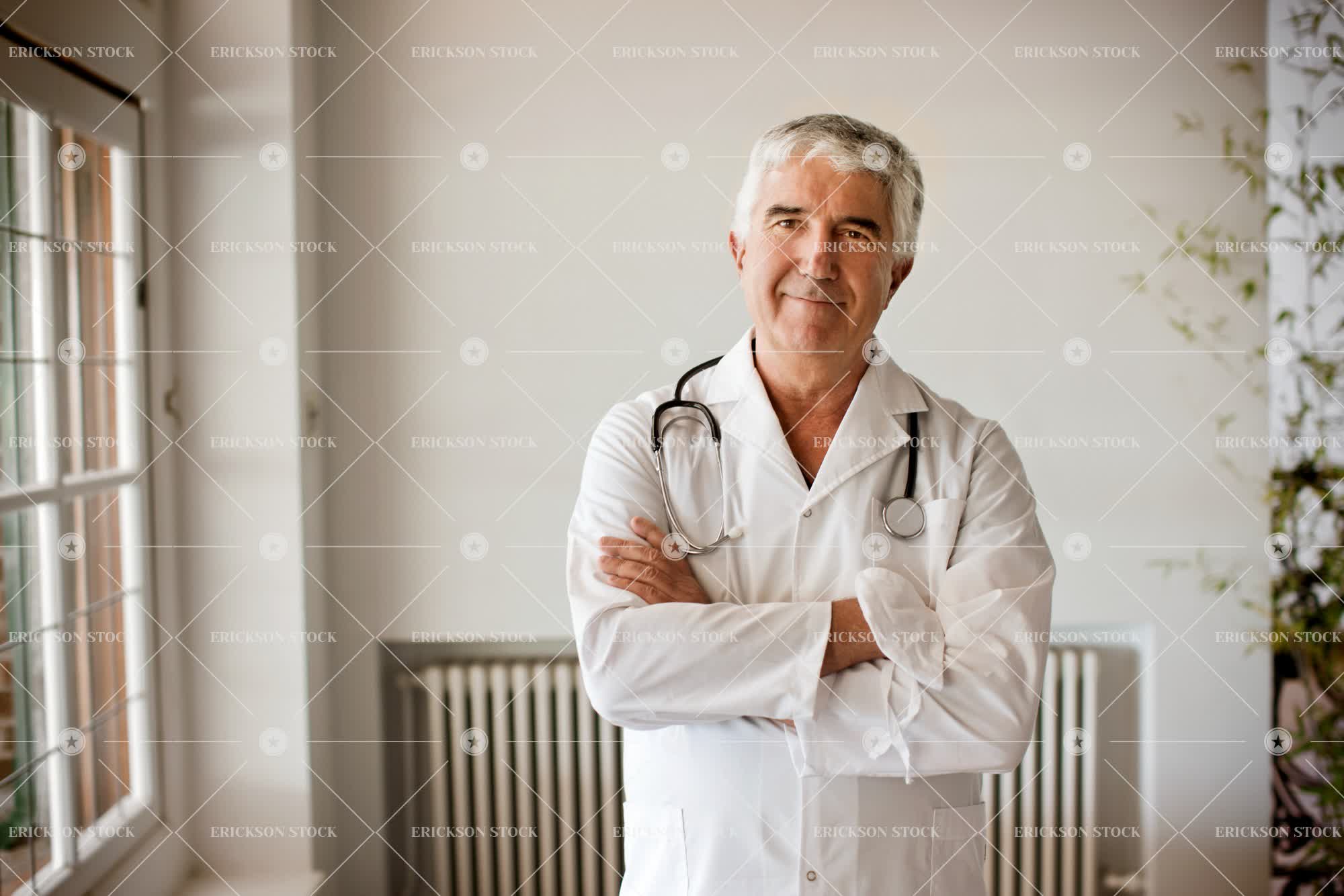 Tags adult, arms crossed, authority, caucasian, cheerful, clinic, copy space, copy space bottom, day, delight, doctor, doctor's office, elderly, enjoyment, expert, expertise, experts, Eye contact, folded arms, gray hair, grey hair, half length, happiness, happy, health, healthcare, healthcare and medicine, horizontal, hospital, hospitals, indoor, indoors, inside, joy, joyful, lab coat, lab coats, look at camera, looking at camera, male, man, mature adult, md, medical, medical practitioner, medical practitioners, medicine, negative space, negative space bottom, old, one person, people, person, physician, physicians, selective focus, senior adult, smile, smiling, specialist, specialists, stethoscope, stethoscopes, waist up