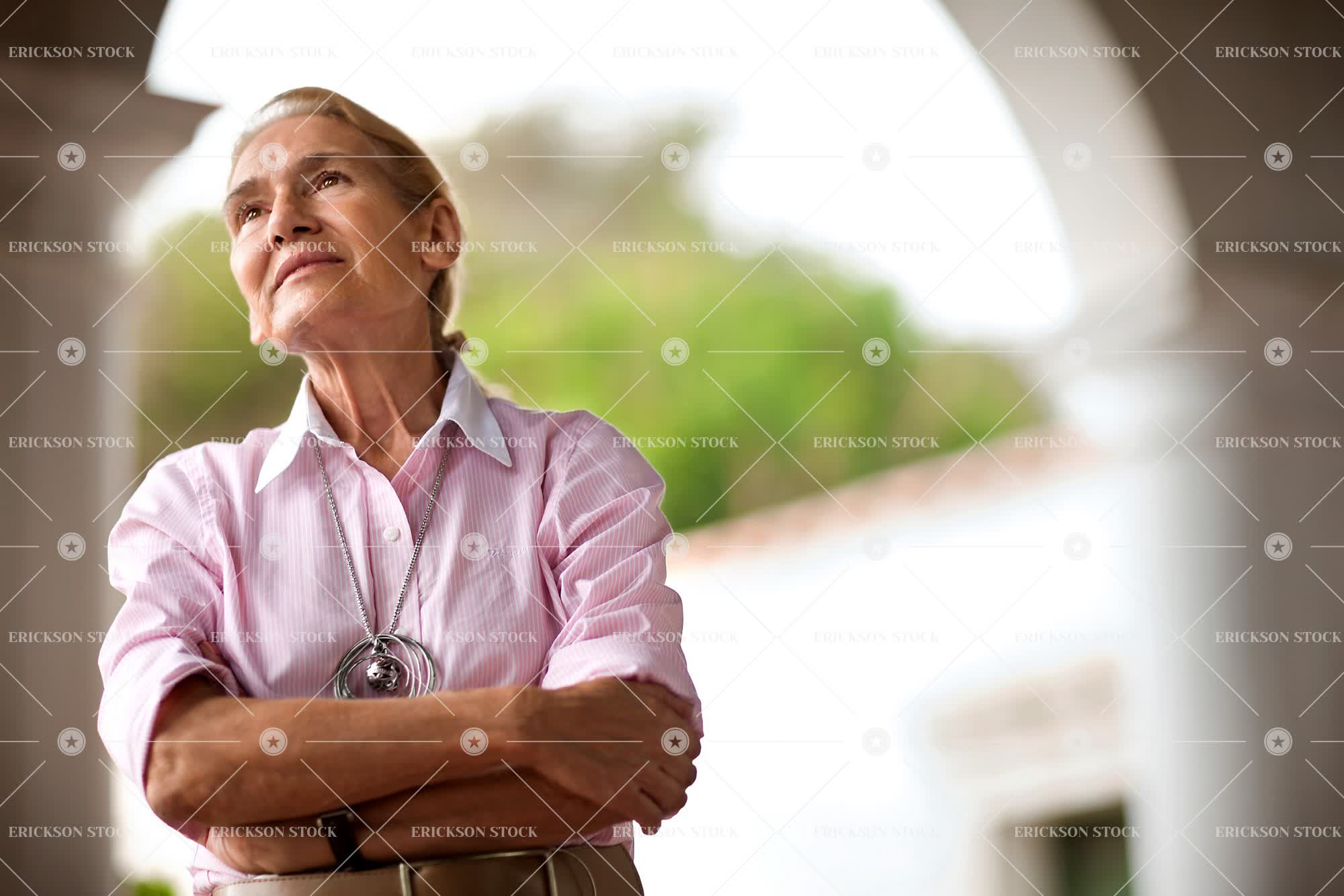 Tags adult, agriculture, arms crossed, caucasian, contemplate, day, elderly, female, folded arms, horizontal, mature adult, old, one person, outdoor, outdoors, outside, pensive, people, person, selective focus, senior adult, thinking, thoughtful, vineyard, vineyards, viniculture, viticulture, wine industry, winemaking, woman