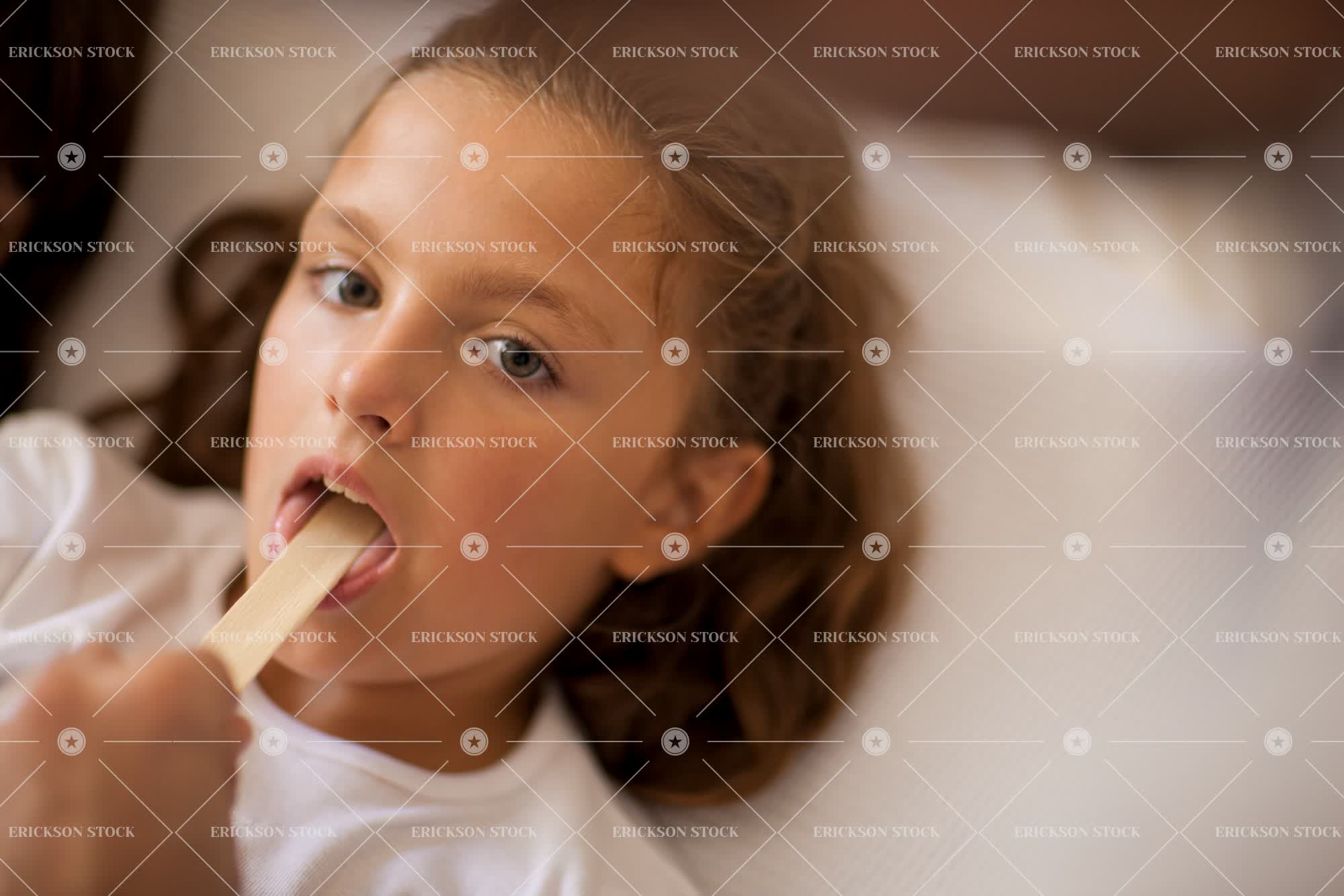 Tags caucasian, child, day, doctor, doctor's office, elementary age, exam, examination, examining throat, exams, Eye contact, female, girl, girls, head, head & shoulders, head and shoulders, head shot, headshot, health, healthcare, high angle, high angle view, horizontal, hospital, hospitals, ill, illness, indoor, indoors, inside, kid, kids, lie down, look at camera, looking at camera, Lying down, md, medical, medical condition, medical exam, medicine, one person, patient, patients, people, person, physician, physicians, pre-adolescent, pre-adolescents, Pre-teen, pre-teens, preteen, preteens, problem, problems, selective focus, shoulders, sick, sickness, stick, stick in mouth, sticking out tongue, sticking tongue out, tongue depressor, tween