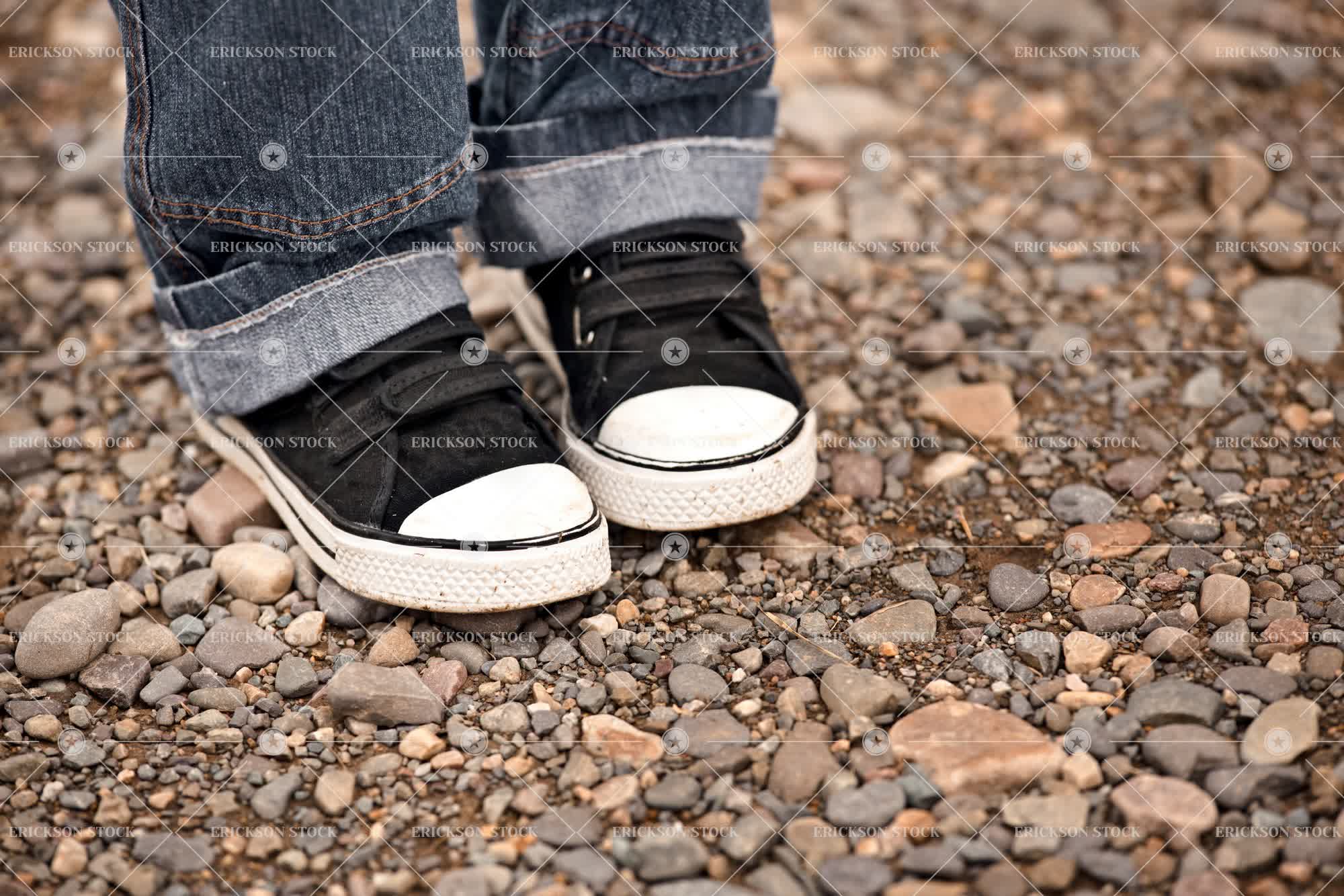 Tags black, boy, child, close up, copy space, country, countryside, cropped, day, elementary age, gravel, horizontal, kid, kids, low section, male, negative space, non-urban, one person, outdoor, outdoors, outside, part of, pebble, pebbles, people, person, preschool age, preschooler, preschoolers, rural, selective focus, shoes, toddler, white