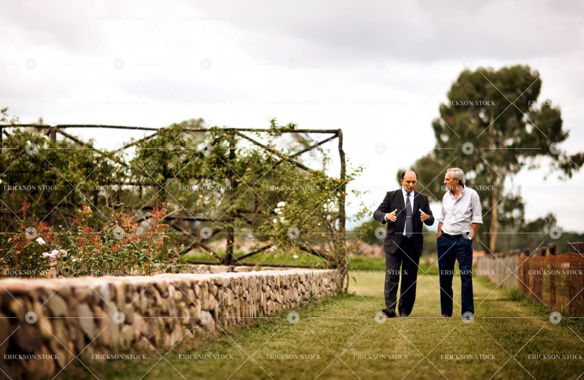 Tags adult, agriculture, associate, blazer, business, business man, caucasian, conversation, copy space, country, countryside, day, executive, executives, farmer, farmers, full length, gray hair, grey hair, Growth, horizontal, low angle, low angle view, male, man, mature adult, mid adult, natural, nature, negative space, non-urban, outdoor, outdoors, outside, partner, people, person, rural, rural life, selective focus, senior adult, shirt, shirt and tie, shirts, speak, speaking, speaks, suit, talk, talking, talks, tie, Tree, tree trunk, tree trunks, trees, two people, walk, Walking, walks, well-dressed