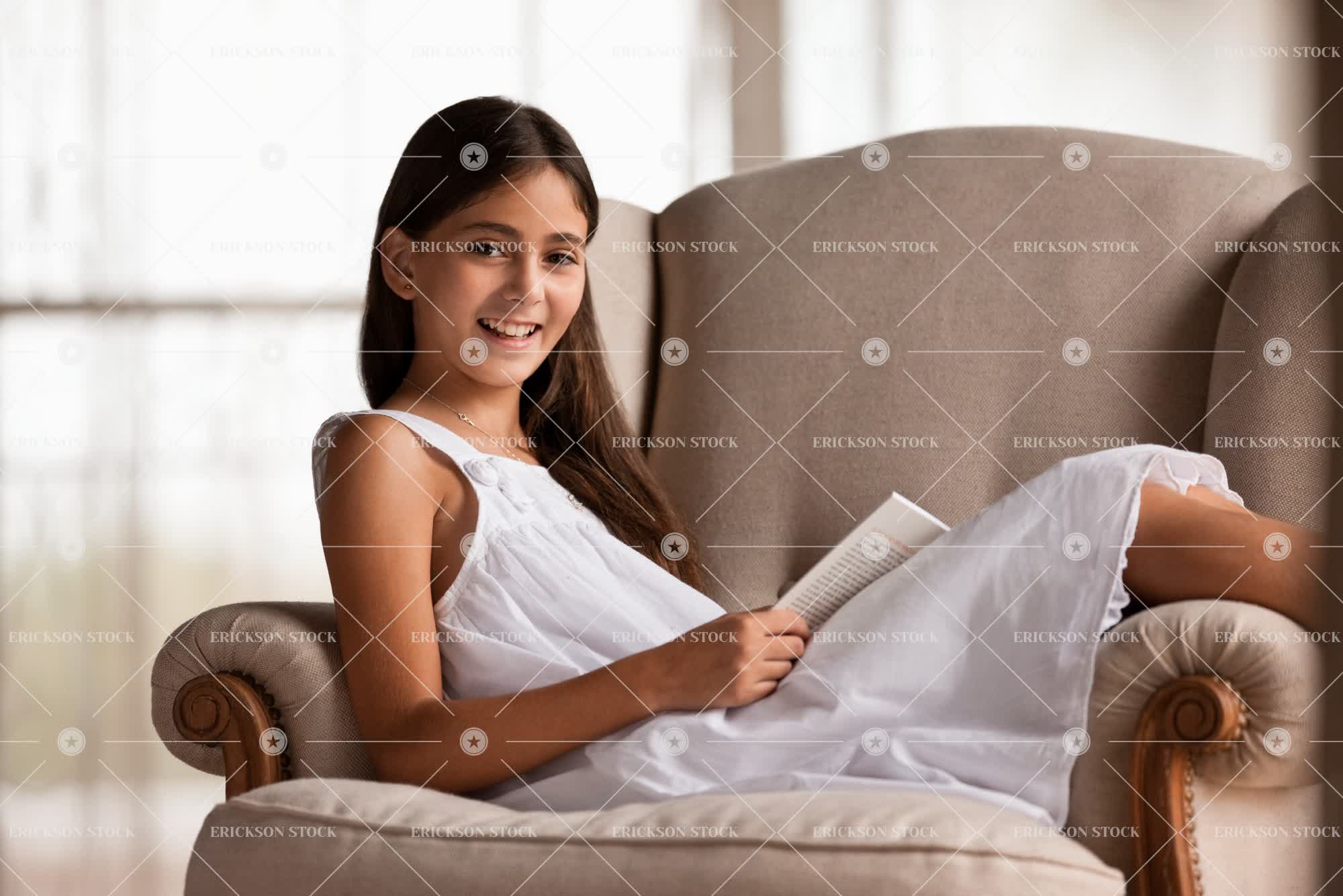 Tags armchair, book, caucasian, chair, cheerful, child, day, delight, elementary age, enjoyment, Eye contact, female, Furniture, girl, girls, happiness, happy, home interior, home interiors, horizontal, indoor, indoors, inside, joy, joyful, kid, kids, leisure, leisure activities, leisure activity, Living room, living rooms, look at camera, looking at camera, lounge, lounges, one person, people, person, pre-adolescent, pre-adolescents, Pre-teen, pre-teens, preteen, preteens, read, reading, recreation, recreational pursuit, recreational pursuits, seat, seatings, sit, sitting, sitting room, sitting rooms, smile, smiling, teenager, three quarter length, tween