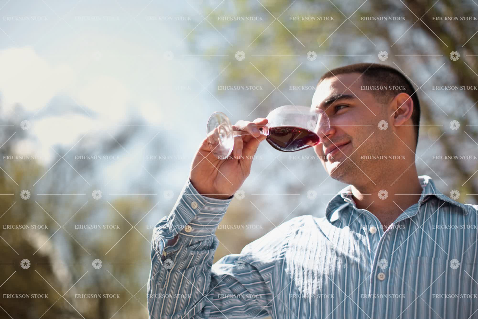 Tags adult, caucasian, copy space, copy space bottom, day, drink, enjoyment, happiness, happy, head, head & shoulders, head and shoulders, head shot, headshot, horizontal, leisure, leisure activity, male, man, mid adult, negative space, negative space bottom, one person, outdoor, outdoors, outside, people, person, recreation, recreational pursuit, recreational pursuits, red wine, selective focus, shirt, shirts, shoulders, smelling, smells, smile, smiling, sniffing, sniffs, sun, sunny, sunshine, tasting, Tree, trees, vineyard, vineyards, viticulture, wine, wine glass, wine glasses, wine tasting, wineglass, wineglasses, winemaking, wines, young adult