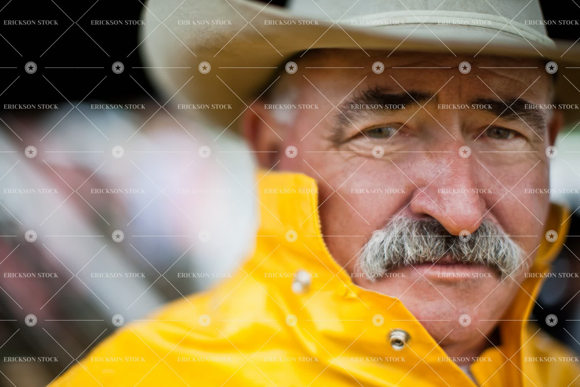 Tags adult, american, caucasian, coat, copy space, copy space bottom, country, countryside, cowboy, cowboy hat, day, Eye contact, facial hair, frown, frowning, hat, hats, head, head & shoulders, head and shoulders, head shot, headshot, horizontal, Jacket, jackets, look at camera, looking at camera, male, man, mature adult, moustache, moustaches, mustache, mustaches, negative space, negative space bottom, one person, outdoor, outdoors, outside, people, person, portrait, Portraits, rain, rain jacket, raining, rural, rural life, selective focus, senior adult, serious, seriously, shoulders, stand, standing, stands, western wear, wet