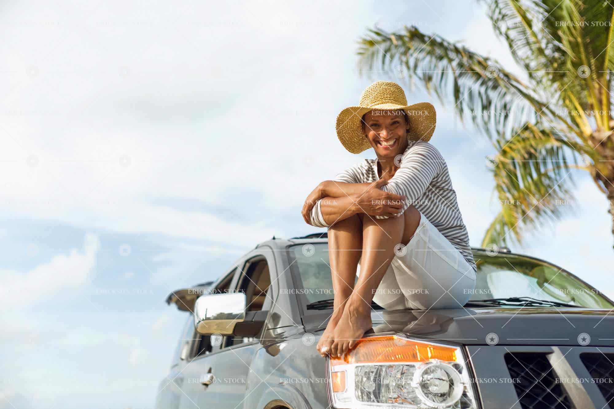 Tags adult, african american, car, copy space, day, female, full length, Growth, hat, hats, horizontal, mature adult, mid adult, natural, nature, negative space, one person, palm, palm tree, palm trees, palms, people, person, selective focus, sitting in the sun, sitting on bonnet, sitting on car, sun hat, sun hats, sunhat, sunhats, sunshine, transport, Transportation, Tree, trees, vehicle, vehicles, woman