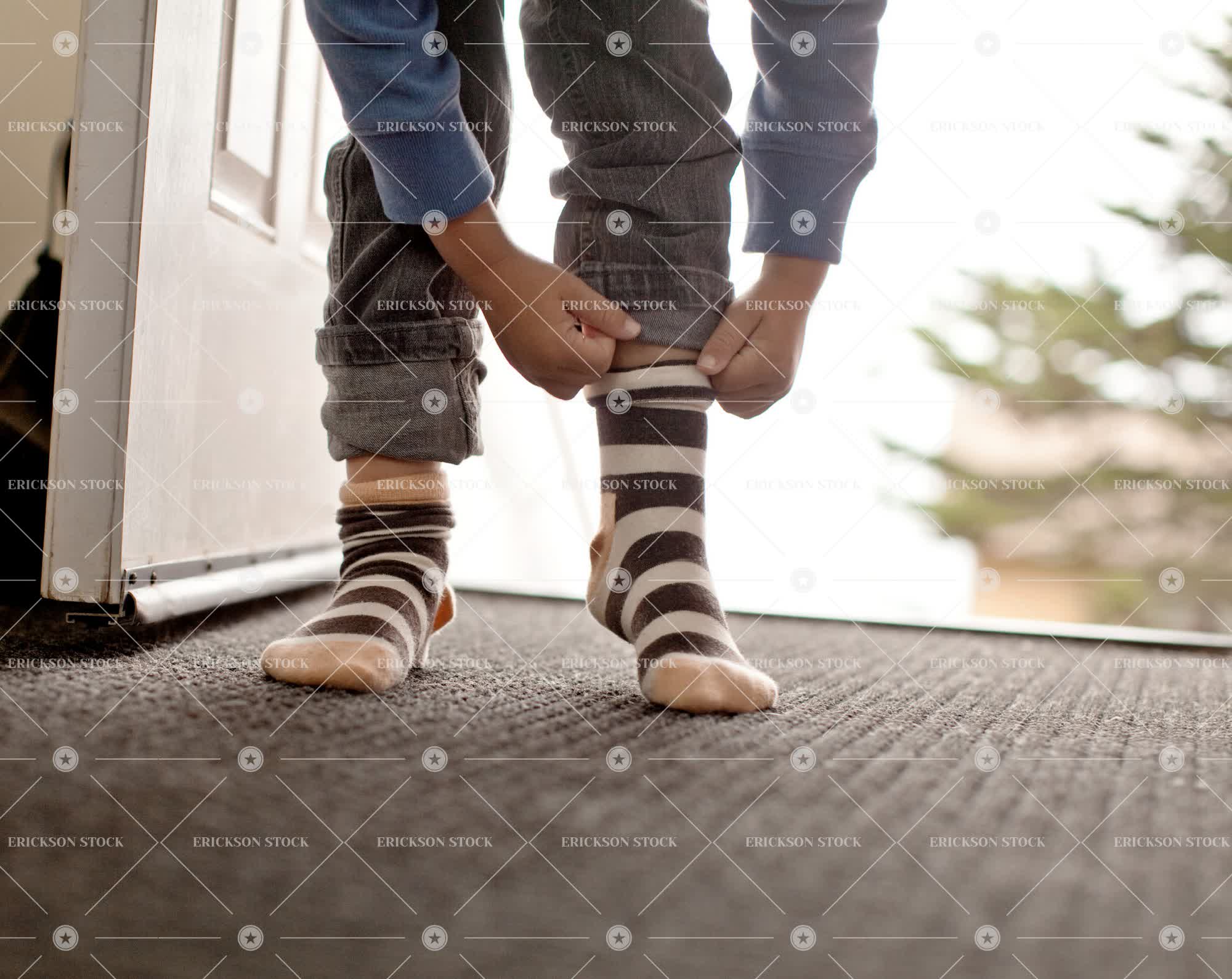 Tags boy, caucasian, child, copy space, copy space bottom, cropped, day, door, doorframe, doorway, entrance, entry, entryway, entryways, frame, horizontal, kid, kids, low section, male, negative space, negative space bottom, one person, outdoor, outdoors, outside, pants rolled up, part of, people, person, pulling up socks, rolled up pants, selective focus