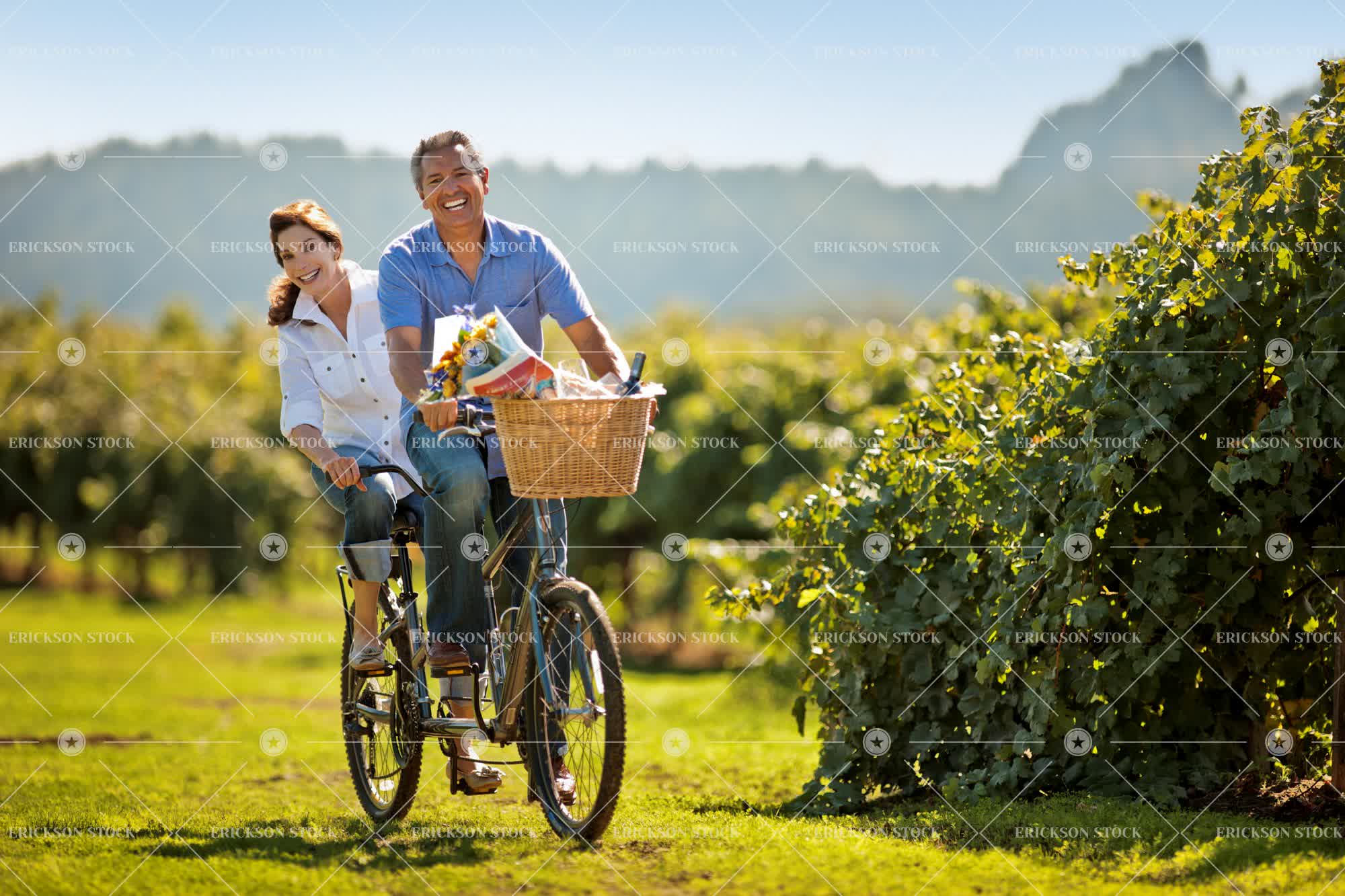 Tags adult, affectionate, agriculture, basket, bike, blouse, blue jeans, brunette, casual clothes, cheerful, copy space, country, countryside, couple, day, delight, denim, double bicycle, enjoyment, excited, excitement, Eye contact, female, full length, Fun, grape, grape vine, grape vines, grapes, gray hair, green, greenery, grey hair, grin, grinning, grins, happiness, happy, having fun, heterosexual, heterosexual couple, heterosexual couples, horizontal, Husband, husband and wife, husbands, jeans, joy, joyful, latin american, laughing, leaf, leafy, leaves, leisure, leisure activities, leisure activity, look at camera, looking at camera, love, loving, low angle, low angle view, male, man, marriage, married, mature adult, mid adult, natural, nature, negative space, non-urban, outdoor, outdoors, outside, partner, people, person, recreation, recreational pursuit, recreational pursuits, relationship, relationships, ride, rides, riding, romance, romantic, rural, rural life, selective focus, shirt, shirts, smile, smiling, spouse, spouses, together, togetherness, toothy smile, top, transport, Transportation, two people, vine, vines, vineyard, vineyards, viniculture, viticulture, wife, wine industry, winemaking, wives, woman