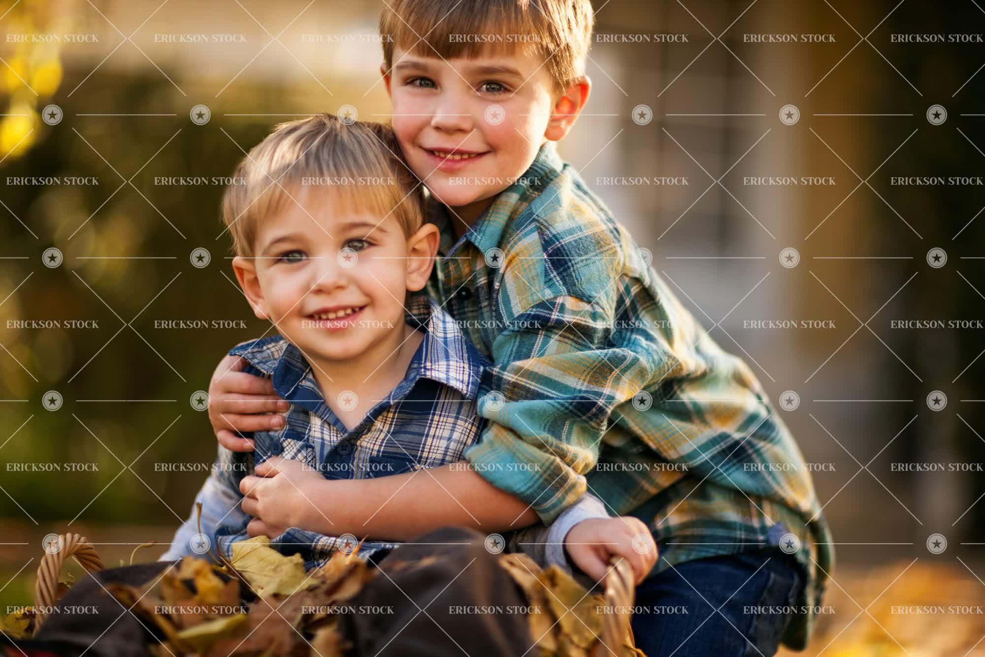 Tags adorable, affectionate, arm around, autumn, backyard, basket, blond, blue jeans, boy, brother, button down shirt, casual clothes, caucasian, check, checkered, cheerful, child, collared shirt, copy space, country, countryside, crouch, Cute, day, delight, denim, embrace, embracing, enjoyment, Eye contact, fall, falling, falling leaves, falls, front or back yard, frontyard, frontyards, Fun, garden, gardens, grass, grassy, green, greenery, happiness, happy, having fun, horizontal, hug, hugging, jeans, joy, joyful, kid, kids, lawn, leaf, leafy, leaves, leisure, leisure activities, leisure activity, look at camera, looking at camera, male, natural, nature, negative space, non-urban, outdoor, outdoors, outside, people, person, plaid, recreation, recreational pursuit, recreational pursuits, rural, rural life, selective focus, shirt, shirts, sibling, siblings, sit, sitting, smile, smiling, squat, Squatting, three quarter length, toddler, towhead, Tree, trees, two people
