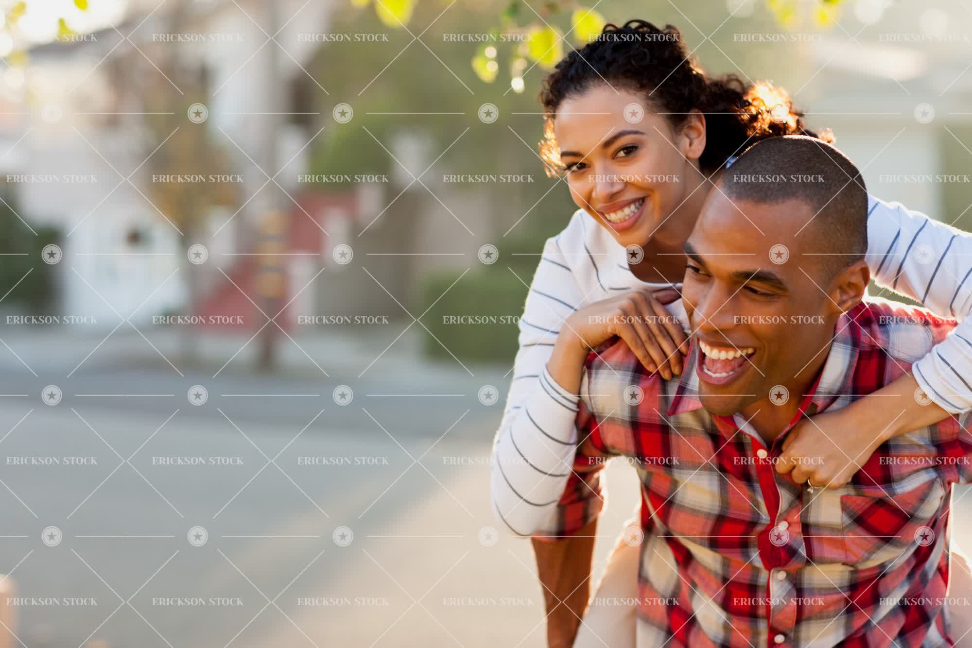 Tags adult, affectionate, african american, arm around, blouse, boyfriend, brunette, building, checkered, cheerful, copy space, couple, curl, day, delight, engaged, engagement, enjoyment, excited, excitement, Eye contact, female, fiancé, fiancee, Fun, girlfriend, girlfriends, grin, grinning, grins, half length, happiness, happy, having fun, heterosexual, heterosexual couple, heterosexual couples, home, homes, horizontal, house, house exterior, house exteriors, household, households, houses, Husband, husband and wife, husbands, joy, joyful, laughing, leisure, leisure activities, leisure activity, look at camera, looking at camera, love, loving, lumberjack shirt, male, man, marriage, married, mid adult, negative space, non-urban, outdoor, outdoors, outside, partner, people, person, piggy back, piggy back ride, piggyback, piggyback ride, plaid shirt, Playful, Playing, portrait, Portraits, recreation, recreational pursuit, recreational pursuits, red, relationship, relationships, residence, residences, residential, residential district, residential districts, ride, riding, ringlet, ringlets, selective focus, shirt, shirts, smile, smiling, spouse, spouses, stripe, striped, stripes, stripy, Suburb, suburban, suburbia, suburbs, together, togetherness, toothy smile, top, two people, waist up, wife, wives, woman, young adult