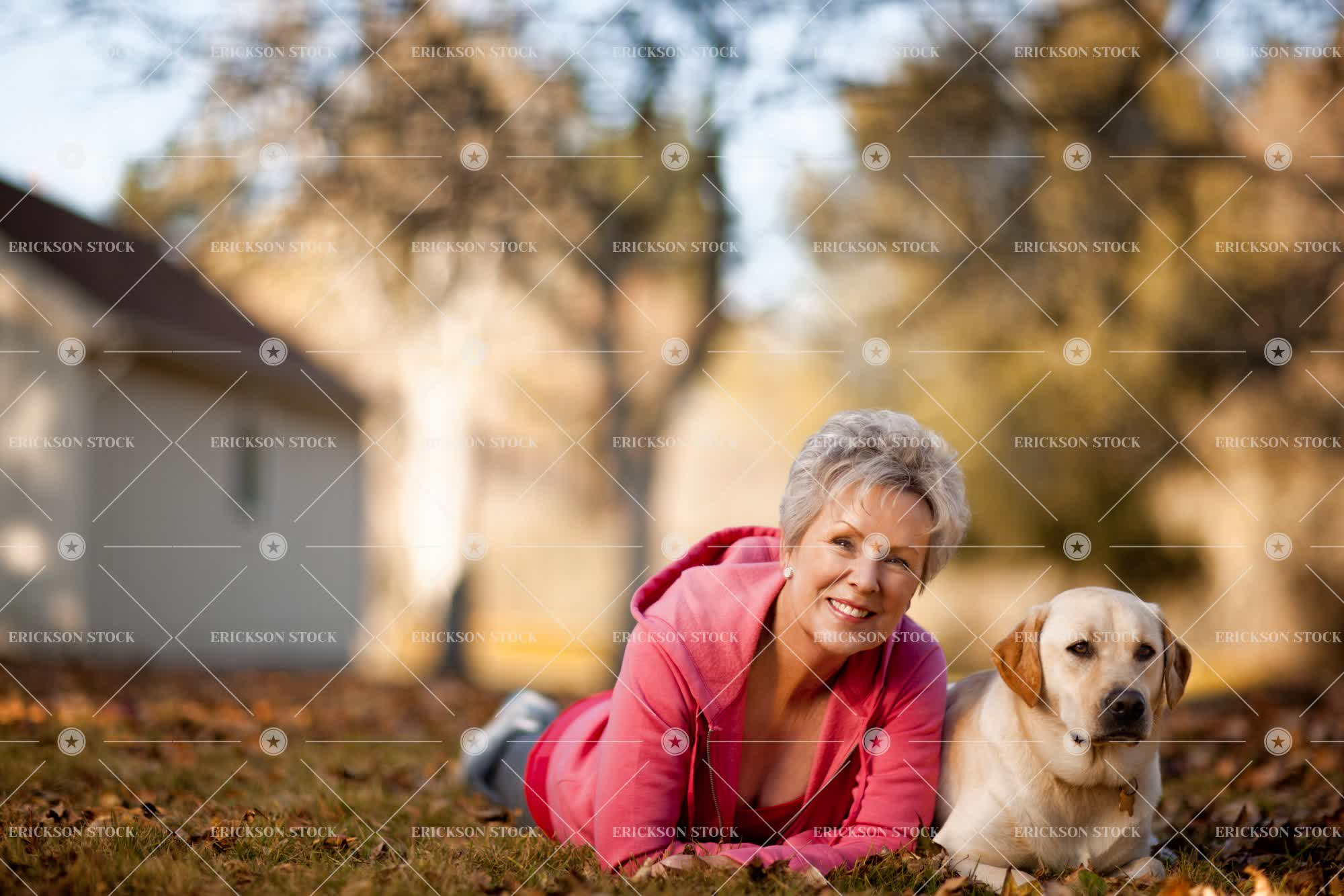 Tags active, active senior, adult, animal, architectural exterior, architecture, building, carefree, caucasian, cheerful, companion, copy space, country, countryside, day, delight, dog, domestic, elderly, enjoyment, exterior, Eye contact, fall, female, field, fields, full length, Fun, golden labrador, Grassland, grasslands, gray hair, grey hair, happiness, happy, having fun, hood, hooded, hooded shirt, hooded shirts, hoodie, hoodies, horizontal, joy, joyful, labrador, leaf, leaves, leisure, leisure activities, leisure activity, lie down, lie on front, look at camera, looking at camera, Lying down, lying on front, mature adult, Meadow, meadows, nature, negative space, next to, old, one animal, one person, outdoor, outdoors, outside, owner, owners, paddock, paddocks, Park, parks, pasture, pastures, people, person, pet, pets, pink, portrait, Portraits, recreation, recreational pursuit, recreational pursuits, Relaxation, relaxed, relaxing, rest, Resting, retirement, rural, selective focus, senior adult, side by side, smile, smiling, sports clothing, sportswear, sweats, sweatshirt, sweatshirts, tracksuit, Tree, trees, vitality, woman, young at heart