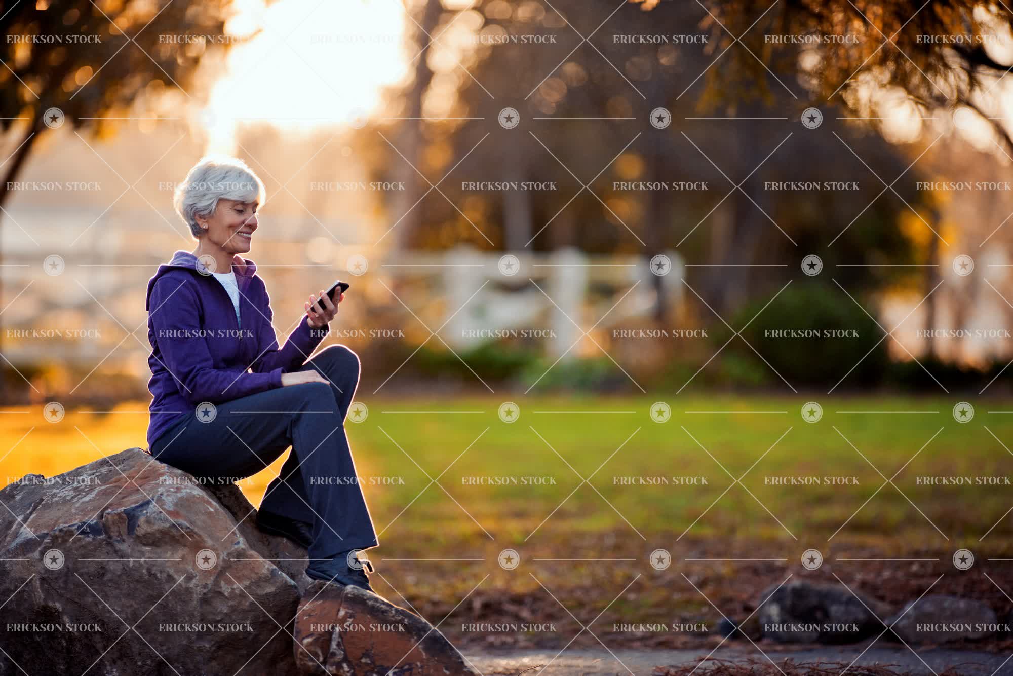 Tags active, active senior, adult, boulder, carefree, caucasian, cell phone, cheerful, communicate, connect, copy space, country, countryside, day, delight, elderly, enjoyment, female, field, fields, full length, Fun, Grassland, grasslands, gray hair, grey hair, hand on knee, hands on knees, happiness, happy, having fun, hood, hooded, hooded shirt, hooded shirts, hoodie, hoodies, horizontal, Independence, independent, joy, joyful, leisure, leisure activities, leisure activity, mature adult, Meadow, meadows, message, messaging, mobile, mobile phone, mobile phones, mobiles, negative space, old, one person, outdoor, outdoors, outside, paddock, paddocks, Park, parks, pasture, pastures, people, person, phone, phones, purple, recreation, recreational pursuit, recreational pursuits, retirement, rock, rocks, rural, selective focus, senior adult, sit, sitting, smile, smiling, sports clothing, sportswear, sweats, technology, text message, text messaging, texting, tracksuit, vitality, wireless technology, woman, young at heart