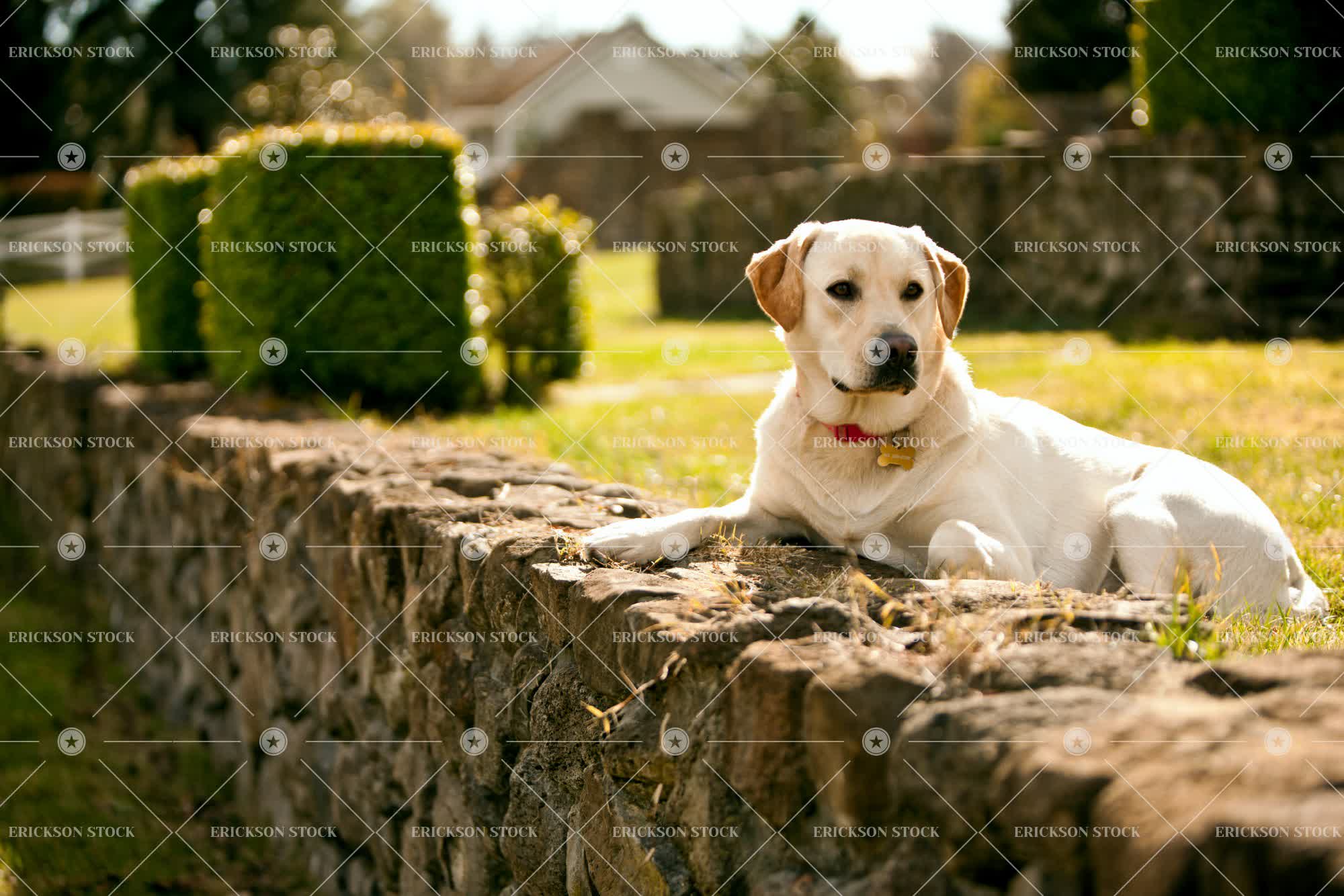 Tags animal, backyard, copy space, day, dog, domestic, front or back yard, frontyard, frontyards, full length, garden, gardens, golden labrador, golden labradors, grass, horizontal, labrador, labradors, lawn, negative space, nobody, pet, pets, selective focus