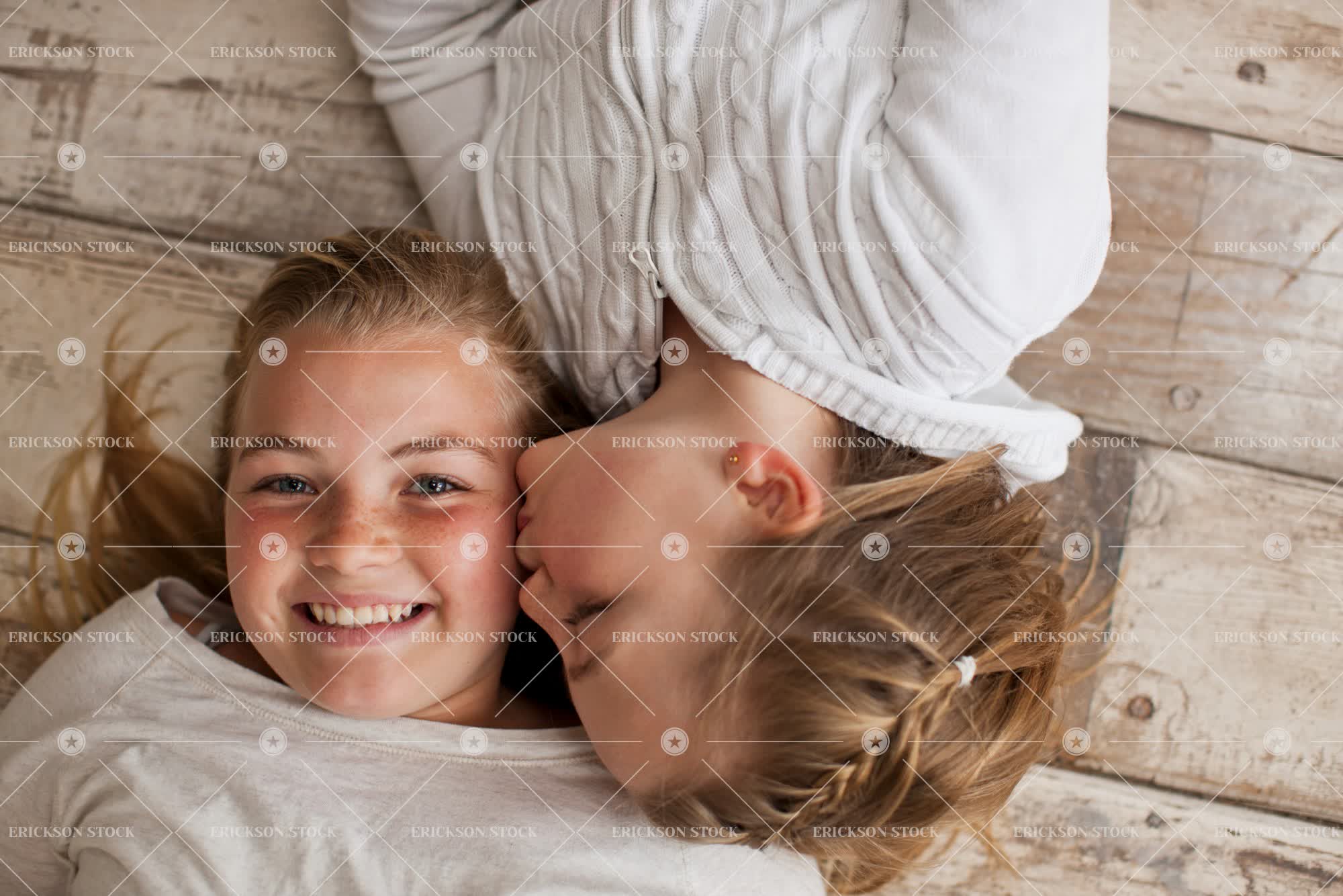 Tags affectionate, blond, bond, braids, casual clothes, caucasian, cheek, cheerful, child, close, copy space, delight, directly above, enjoyment, Eye contact, family, female, floorboard, floorboards, flooring, freckle, freckled, freckles, freckling, friend, friends, friendship, Fun, garage, garages, girl, girls, grin, grinning, grins, hair braids, half length, happiness, happy, hardwood floor, having fun, head, head & shoulders, head and shoulders, head shot, headshot, hood, hooded, hooded shirt, hooded shirts, hoodie, hoodies, horizontal, indoor, indoors, inside, interior, interiors, joy, joyful, kid, kids, kiss, kiss on cheek, kisses, kisses on cheek, Kissing, kissing on cheek, leisure, leisure activities, leisure activity, lie down, lie on back, long hair, look at camera, looking at camera, love, loving, Lying down, lying on back, negative space, next to, overhead, people, person, play, Playful, Playing, plays, portrait, Portraits, recreation, recreational pursuit, recreational pursuits, selective focus, shoulders, sibling, siblings, side by side, sister, sisters, smile, smiling, sweatshirt, sweatshirts, teenage girl, teenager, together, togetherness, toothy smile, towhead, two people, waist up, wood, wooden