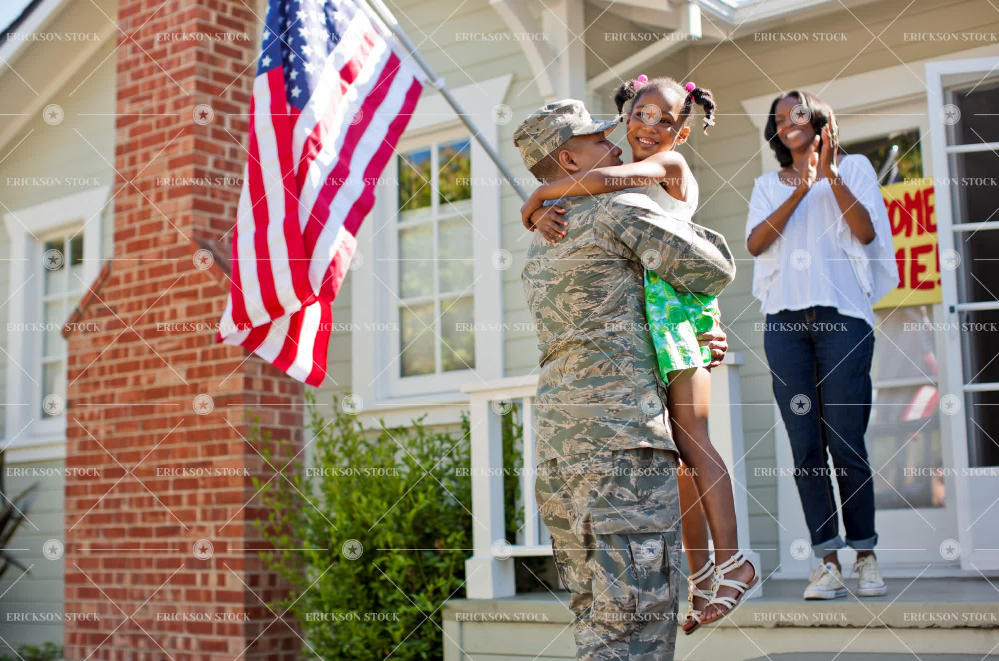 Tags adult, african american, american flag, arm around, armed forces, boy, building, camouflage, cheerful, child, close, copy space, daughter, day, deck, delight, embrace, embracing, encounter, encounters, enjoyment, excited, excitement, family, father, female, flag, flags, freedom, full length, Fun, girl, girls, greeting, greetings, happiness, happy, having fun, hello, hero, heroes, heroic, hi, home, homecoming, homes, horizontal, house, house exterior, house exteriors, household, households, houses, hug, hugging, identity, intimacy, intimate, joy, joyful, kid, kids, leisure, leisure activities, leisure activity, love, loving, male, man, meeting, meetings, mid adult, military, military uniform, military uniforms, mom, mother, mum, negative space, outdoor, outdoors, outside, parent, parents, patriotic, patriotism, people, person, porch, porches, Pride, proud, recreation, recreational pursuit, recreational pursuits, residence, residences, residential, residential district, residential districts, selective focus, smile, smiling, soldier, soldiers, son, stars and stripes, Suburb, suburban, suburbia, suburbs, teenager, the star-spangled banner, three quarter length, together, togetherness, uniform, uniforms, united, unity, veranda, verandah, verandahs, verandas, war, welcome, welcoming, woman, young adult