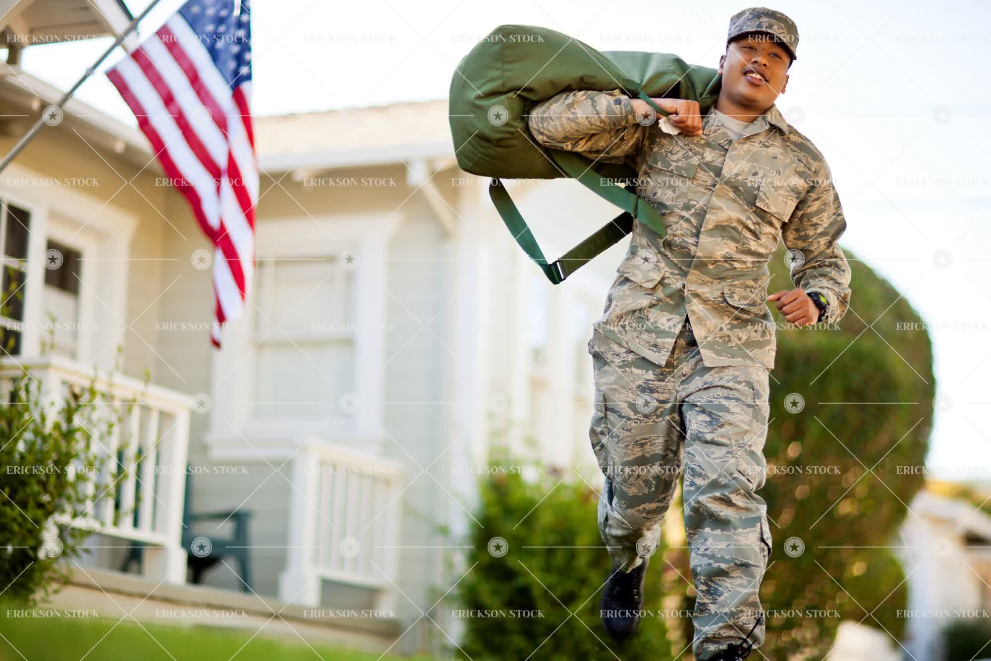 Tags action, adult, adventure, african american, american, american flag, americana, armed forces, black hair, brave, brunette, building, camouflage, cap, carry, cheerful, copy space, day, deck, delight, depart, enjoyment, excited, excitement, facial hair, fit, flag, flags, freedom, full length, go, going, happiness, happy, hat, hats, hero, heroic, heroism, hold, holding, home, homes, horizontal, house, house exterior, house exteriors, household, households, houses, identity, joy, joyful, leave, leaves, leaving, leisure, leisure activities, leisure activity, low angle, low angle view, male, man, mid-air, midair, military, military uniform, military uniforms, motion, moustache, moustaches, moving, mustache, mustaches, negative space, on the move, one person, outdoor, outdoors, outside, patriotic, patriotism, people, person, porch, porches, Pride, proud, recreation, recreational pursuit, recreational pursuits, residence, residences, residential, residential district, residential districts, run, Running, selective focus, short hair, smile, smiling, soldier, soldiers, stars and stripes, Suburb, suburban, suburbia, suburbs, teenager, the star-spangled banner, uniform, uniforms, veranda, verandah, verandahs, verandas, young adult