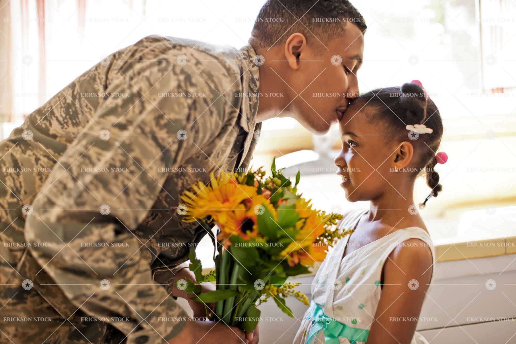 Tags adore, adult, affectionate, african american, armed forces, arrangement, bouquet, bunch, camouflage, child, close, daughter, day, family, father, female, flower, flower bouquet, flower bouquets, flowers, girl, girls, half length, happiness, happy, home, home interior, home interiors, homes, horizontal, house, house interior, house interiors, houses, indoor, indoors, inside, interior, interiors, intimacy, intimate, kid, kids, kiss, kisses, Kissing, kissing on forehead, kissing on head, love, loving, male, man, military, military uniform, military uniforms, nature, parent, parents, people, person, plant, residential, residential district, residential districts, selective focus, soldier, soldiers, Suburb, suburban, suburbia, suburbs, teenager, together, togetherness, two people, uniform, uniforms, waist up, young adult