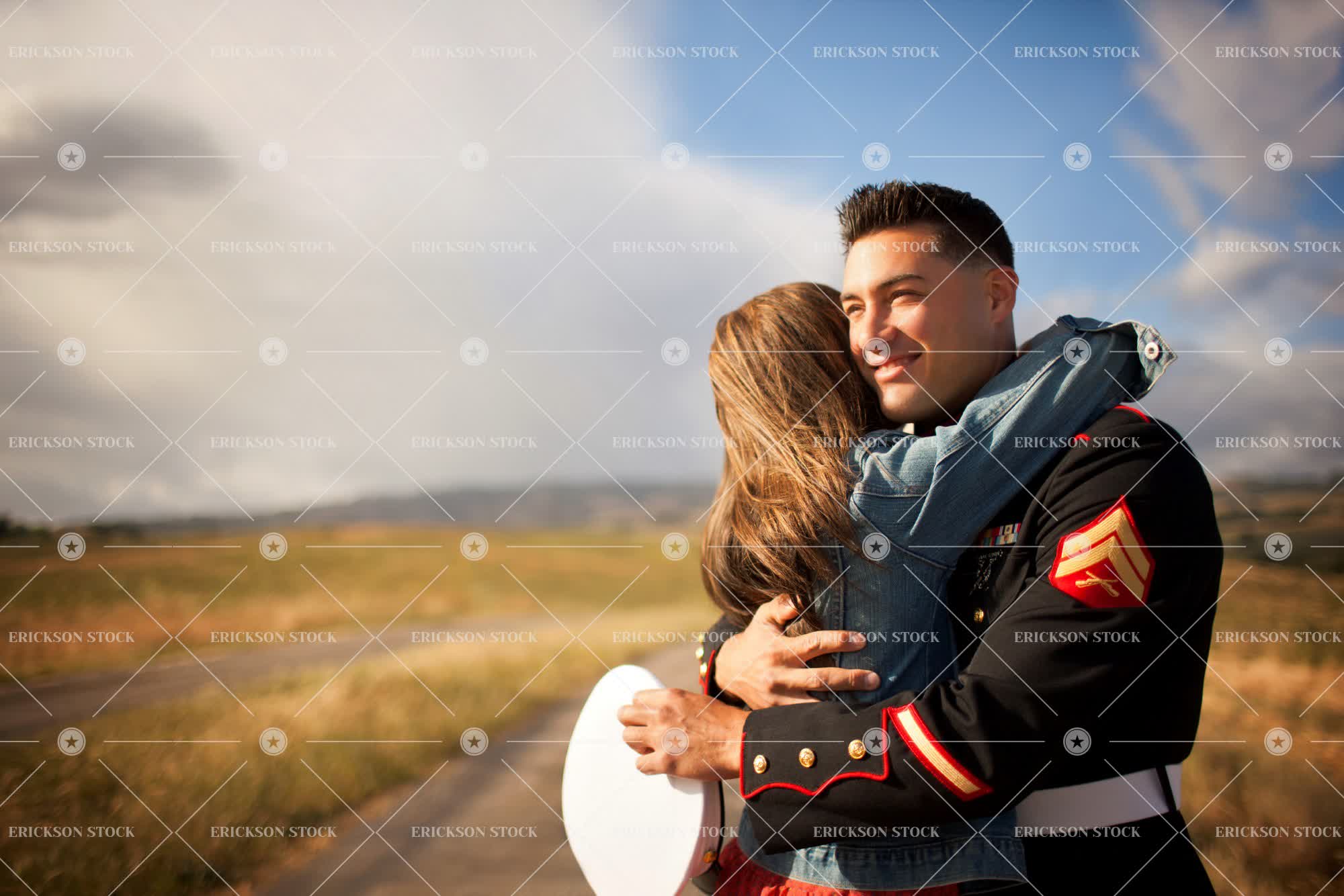 Tags adult, affectionate, arm around, armed forces, attractive, beautiful, brunette, caucasian, cheerful, close, copy space, country, country road, countryside, couple, day, delight, denim, denim jacket, embrace, embracing, enjoyment, excited, excitement, female, Fun, good looking, grateful, grin, grinning, grins, half length, happiness, happy, hat, hats, having fun, heterosexual, heterosexual couple, heterosexual couples, hold, holding, holds, horizontal, hug, hugging, intimacy, intimate, Jacket, joy, joyful, leisure, leisure activities, leisure activity, long hair, love, loving, male, man, mid adult, military, military uniform, military uniforms, negative space, outdoor, outdoors, outside, partner, people, person, pretty, recreation, recreational pursuit, recreational pursuits, relationship, relationships, relief, relieved, road, roads, romance, romantic, rural, rural life, rural road, rural roads, rural scene, selective focus, smile, smiling, soldier, soldiers, stand, standing, stands, sunlight, sunny, teenager, thankful, together, togetherness, toothy smile, two people, uniform, uniforms, waist up, woman, young adult