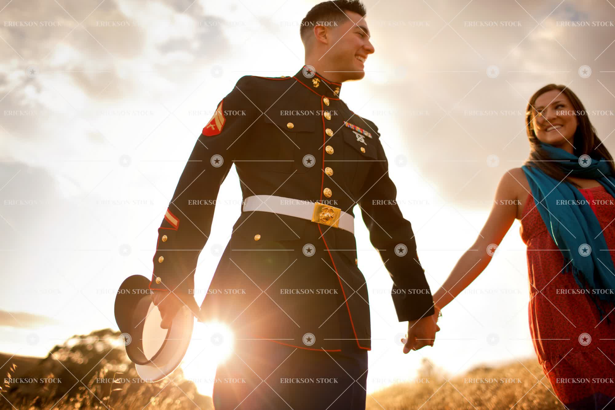 Tags adult, affectionate, armed forces, attractive, beautiful, brunette, caucasian, cheerful, close, copy space, country, countryside, couple, day, delight, dress, enjoyment, excited, excitement, face to face, facing each other, female, field, fields, Fun, good looking, Grassland, grasslands, grin, grinning, grins, hand in hand, happiness, happy, hat, hats, having fun, heterosexual, heterosexual couple, heterosexual couples, hold, hold hand, hold hands, holding, holding hand, Holding hands, holds, horizontal, intimacy, intimate, joy, joyful, leisure, leisure activities, leisure activity, long hair, looking at each other, love, loving, low angle, low angle view, male, man, Meadow, meadows, mid adult, military, military uniform, military uniforms, negative space, outdoor, outdoors, outside, paddock, paddocks, partner, pasture, pastures, people, person, pretty, recreation, recreational pursuit, recreational pursuits, relationship, relationships, romance, romantic, rural, rural life, rural scene, scarf, scarves, selective focus, smile, smiling, solar flare, soldier, soldiers, sun, sunlight, sunny, sunshine, teenager, three quarter length, together, togetherness, toothy smile, two people, uniform, uniforms, united, unity, walk, Walking, walks, woman, young adult