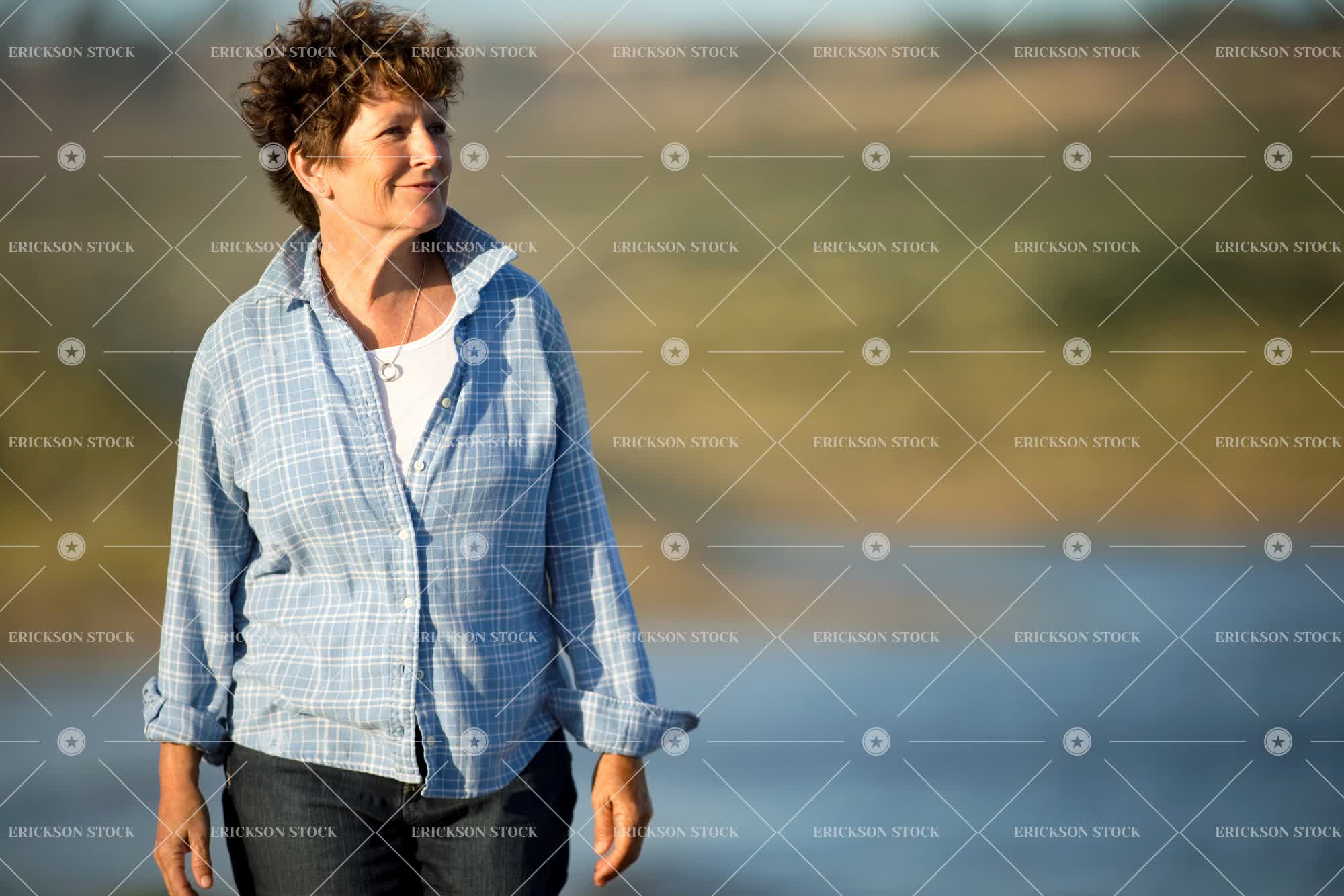 Tags active, adult, beach, brunette, button down shirt, carefree, casual, casual clothes, caucasian, cheerful, coast, collared shirt, day, daydream, delight, denim, enjoyment, female, flannel, Fun, happiness, happy, having fun, horizontal, jeans, joy, joyful, looking away, mature adult, mid adult, necklace, one person, outdoor, outdoors, outside, people, person, portrait, Portraits, seashore, seaside, selective focus, senior adult, shirt, shirts, shore, shoreline, shores, short hair, smile, smiling, standing, sunny, sunshine, thinking, thoughtful, three quarter length, Walking, water, wavy, weekend activities, weekend activity, woman