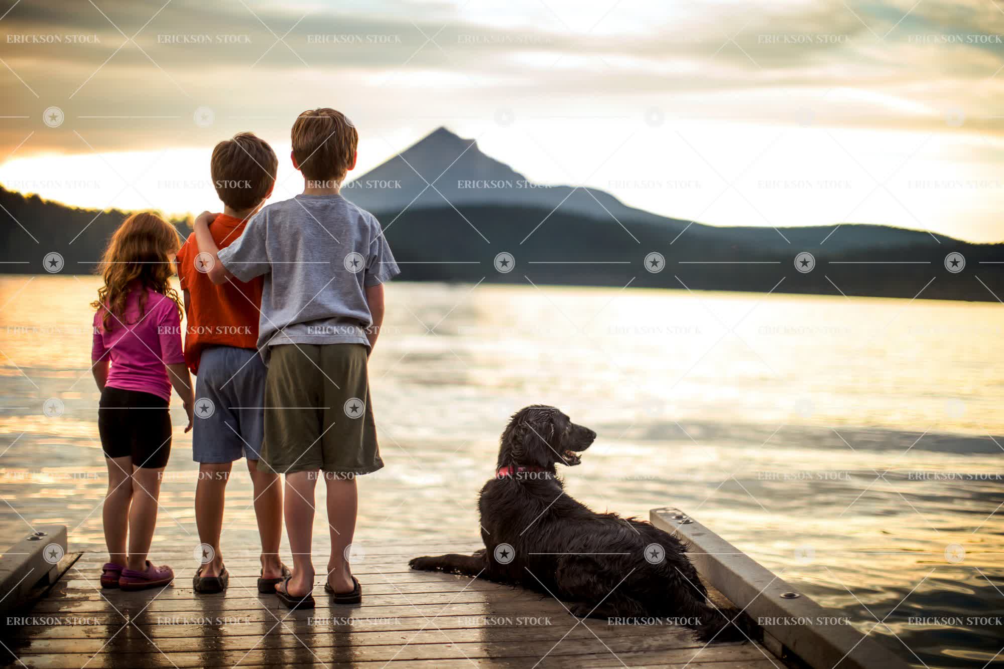 Tags affectionate, animal, arm around, back, back view, bond, boy, brother, brunette, casual clothes, caucasian, child, dog, domestic, dusk, elementary age, evening, family, female, full length, ginger, girl, girls, hand on shoulder, hands on shoulders, hill, hills, horizontal, jetties, jetty, kid, kids, Lake, lakes, Landscape, leisure, leisure activities, leisure activity, male, natural, nature, next to, non-urban, one animal, outdoor, outdoors, outside, people, person, pet, pets, physical geography, Pier, piers, pond, ponds, rear, rear view, recreation, recreational pursuit, recreational pursuits, red hair, redhead, redheaded, sandals, selective focus, Shorts, sibling, siblings, side by side, sister, sisters, stand, standing, stands, sundown, sunset, t-shirt, t-shirts, tee shirt, tee shirts, titian, together, togetherness, twilight, water, weekend activities, weekend activity, Wharf, wharves