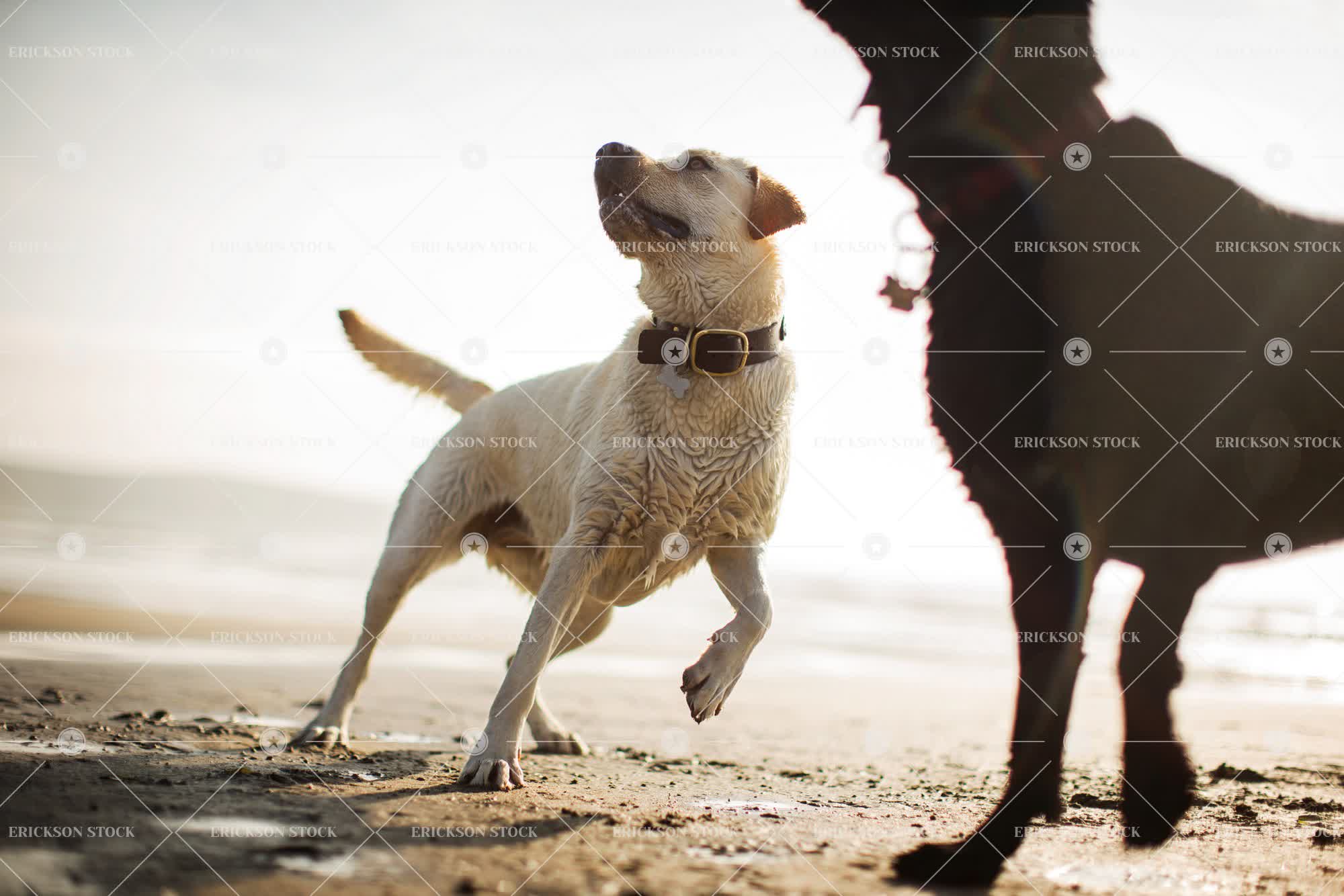 Dogs playing on a beach