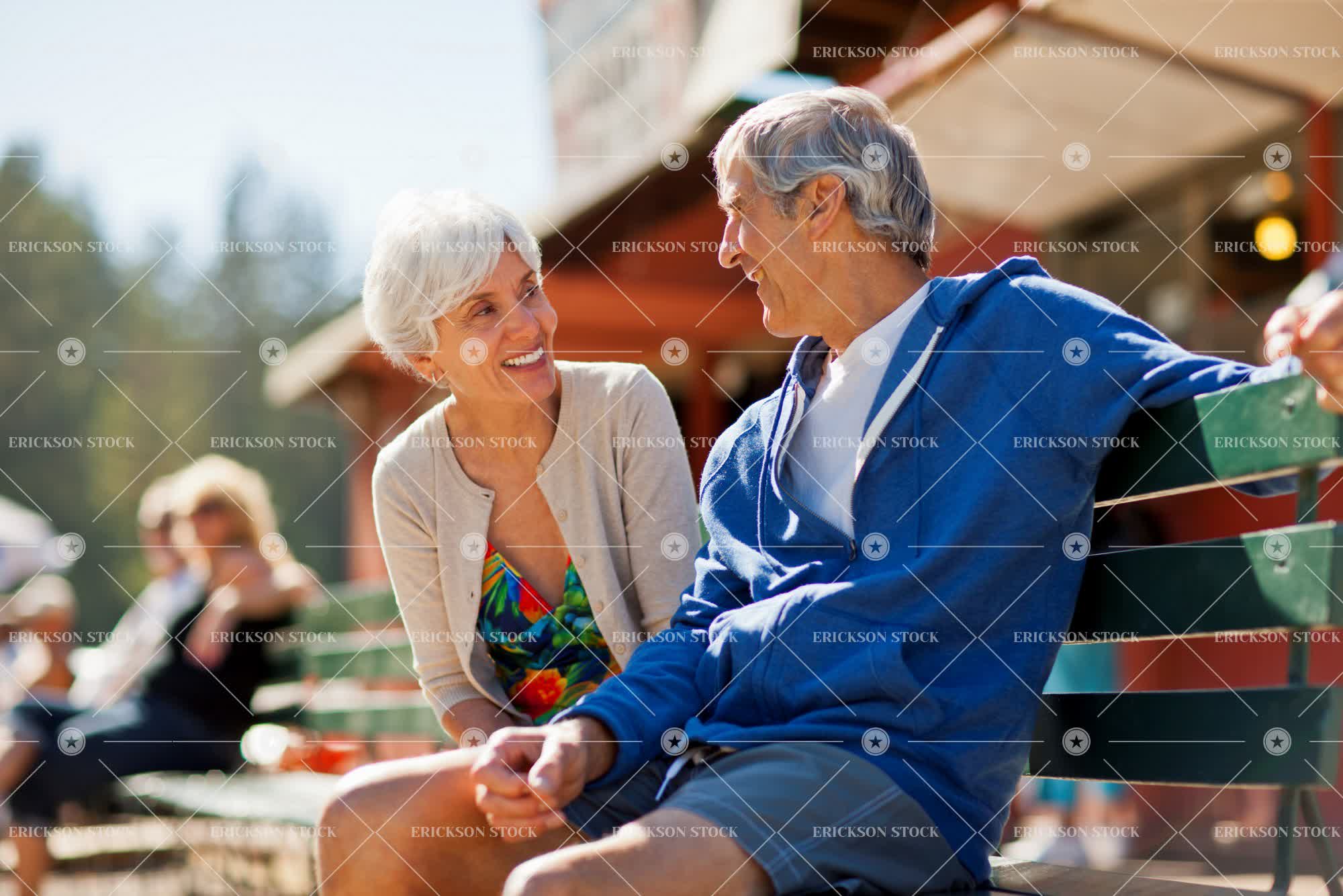 Tags active senior, adult, background people, bathing suit, bench, bond, cardigan, carefree, casual clothes, caucasian, cheerful, conversation, copy space, couple, day, delight, elderly, enjoyment, face to face, facing each other, female, Fun, happiness, happy, having fun, heterosexual, heterosexual couple, heterosexual couples, holiday, holidays, hood, hooded, hooded shirt, hooded shirts, hoodie, hoodies, horizontal, Husband, husband and wife, husbands, joy, joyful, leisure, leisure activities, leisure activity, looking at each other, love, loving, male, man, marriage, married, mature adult, negative space, old, outdoor, outdoors, outside, park bench, park benches, partner, people, people in the background, person, recreation, recreational pursuit, recreational pursuits, relationship, relationships, retirement, seat, seats, selective focus, senior adult, senior couple, sit, sitting, smile, smiling, speak, speaking, speaks, spouse, spouses, Summer, summery, sunlight, sunny, sunshine, sweatshirt, sweatshirts, swimsuit, talk, talking, talks, three quarter length, together, togetherness, travel, two people, united, unity, Vacation, vacations, vitality, warm, warmth, weekend activities, weekend activity, wife, wives, woman