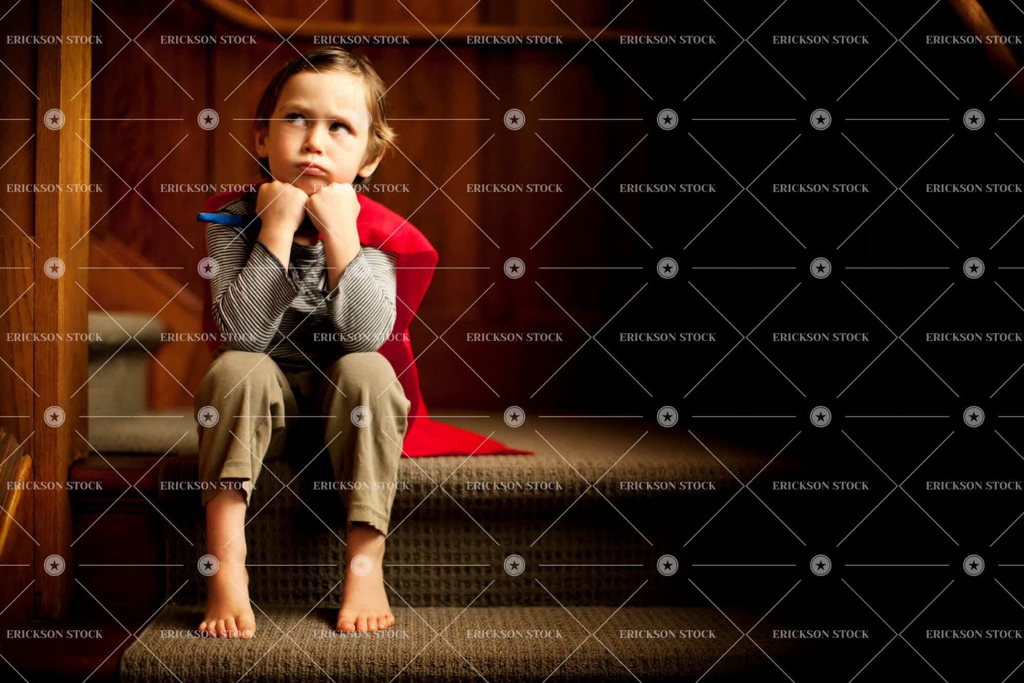 Tags annoyed, attitude, barefoot, boy, brunette, cape, caucasian, child, contemplate, corridor, Costume, cross, disgruntled, dress up, elementary age, enjoyment, fancy dress, frown, frowning, full length, Fun, grumpy, hall, halls, hallway, hallways, hand on chin, having fun, home, home interior, home interiors, homes, horizontal, house, house interior, house interiors, houses, indoor, indoors, inside, interior, interiors, irritable, kid, kids, leisure, leisure activities, leisure activity, look up, looking up, male, moody, one person, Pajamas, pensive, people, person, play, Playful, Playing, plays, pouting, preschool, preschool age, preschooler, preschoolers, pyjama, pyjamas, recreation, recreational pursuit, recreational pursuits, selective focus, short hair, sit, sitting, Sleepwear, staircase, stairs, stairwell, stairwells, step, steps, sulking, sullen, super hero, super heroes, superhero, superheroes, surly, thinking, thoughtful, toddler, unhappy