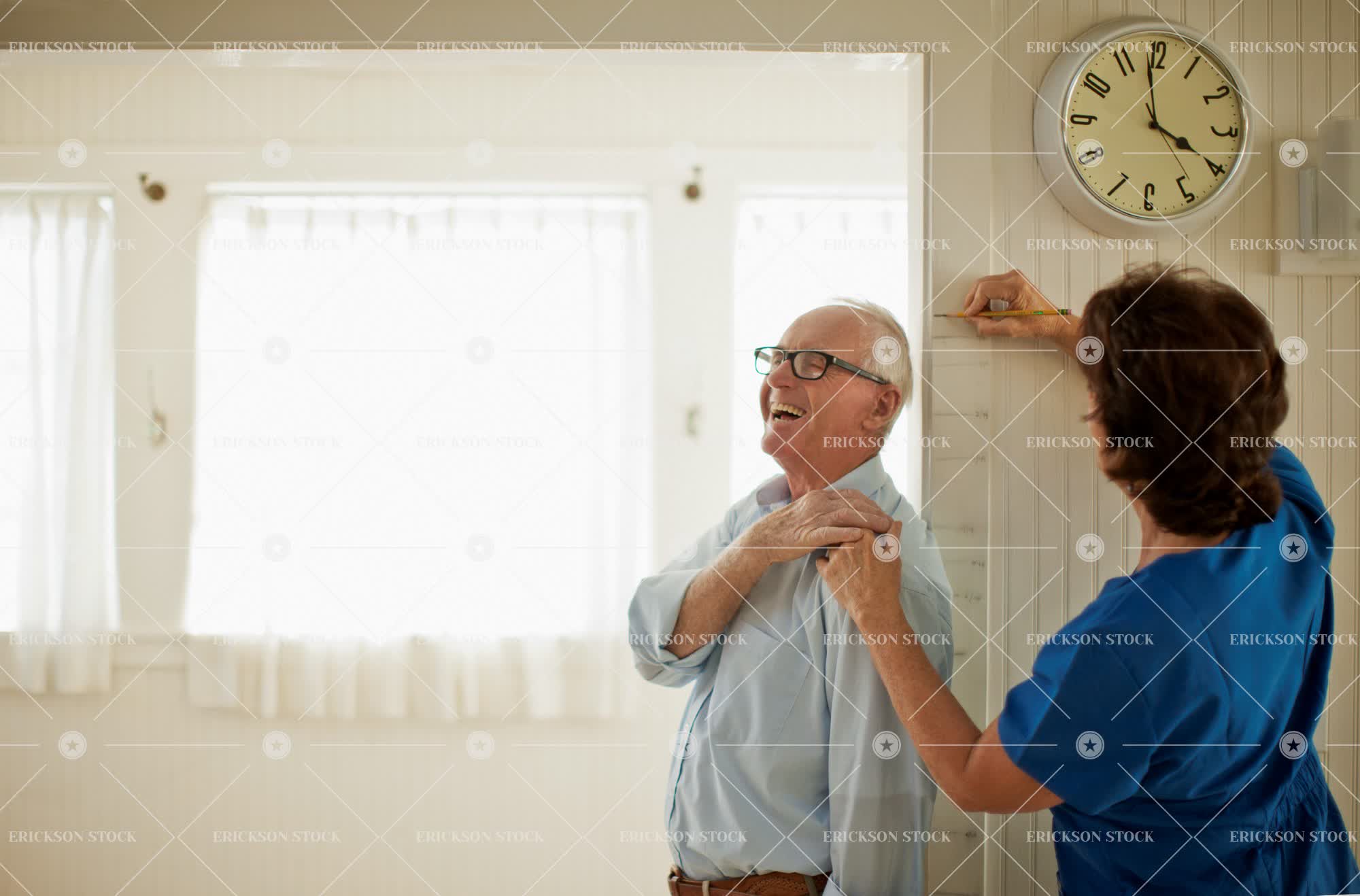 Tags adult, aging, assist, assisted living, brunette, button down shirt, care, caucasian, cheerful, clock, collared shirt, curtain, delight, develop, disabled, elderly, enjoyment, eyeglasses, female, Fun, glasses, golden years, gray hair, grey hair, grin, grinning, grins, half length, hand on shoulder, hands on shoulders, happiness, happy, having fun, health, healthcare, healthcare and medicine, height, help, helping, home, home care, home interior, home interiors, homes, horizontal, house, house interior, house interiors, houses, how tall, ill, illness, indoor, indoors, inside, interior, interiors, joy, joyful, laughing, leisure, leisure activities, leisure activity, male, man, mature adult, measuring height, medicine, mid adult, nurse, nurses, nursing, old, patient, patients, people, person, problems, progress, progressing, recreation, recreational pursuit, recreational pursuits, retired, retirement, selective focus, senior adult, shirt, shirts, short, sick, sickness, smile, smiling, spectacles, tall, together, togetherness, toothy smile, two people, uniform, uniforms, waist up, window, windows, woman