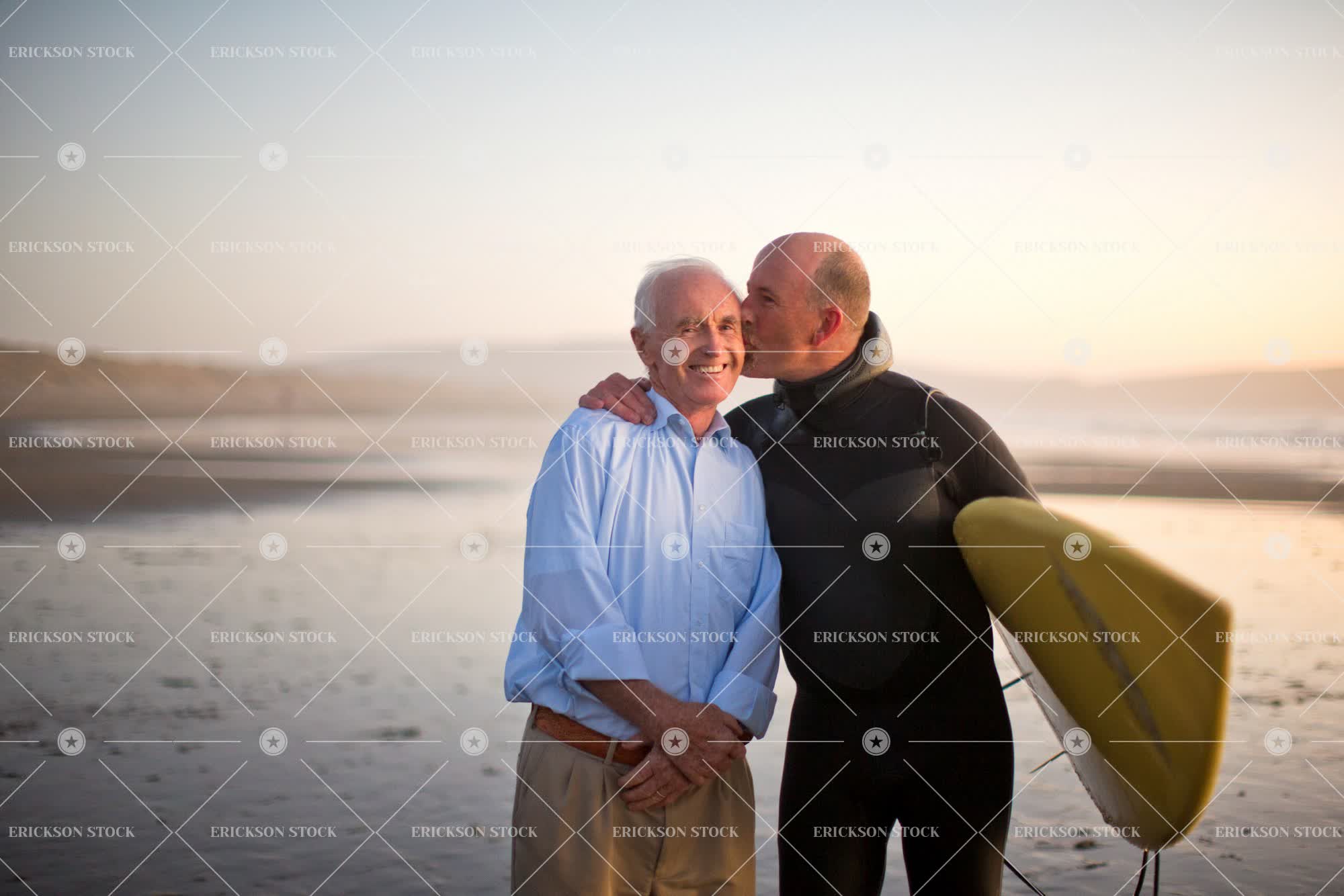 Tags active senior, adult, affectionate, aging, arm around, balance, bald, balding, bathing suit, beach, bond, caucasian, cheek, cheerful, coast, day, delight, elderly, enjoyment, Eye contact, facial hair, family, father, friend, friends, friendship, full body suit, full body suits, Fun, goatee, golden years, gray hair, hand on shoulder, happiness, happy, having fun, holiday, holidays, horizontal, joy, joyful, khakis, kiss, kiss on cheek, kisses, kisses on cheek, Kissing, kissing on cheek, leisure, leisure activities, leisure activity, look at camera, looking at camera, low tide, male, man, mature adult, mid adult, non-urban, ocean, oceans, old, one person, outdoor, outdoors, outside, people, person, portrait, recreation, recreational pursuit, recreational pursuits, retired, retirement, sea, seas, seashore, seaside, selective focus, senior adult, shore, shoreline, shorelines, shores, Skill, smile, smiling, son, sport, Sports, standing, surf, Surfboard, surfboards, Surfer, surfers, Surfing, surfs, swimsuit, three quarter length, tidal, tide, together, togetherness, two people, Vacation, vacations, vitality, water, water sport, water's edge, wave, waves, weekend activities, weekend activity, wetsuit, wetsuits, white hair, young adult