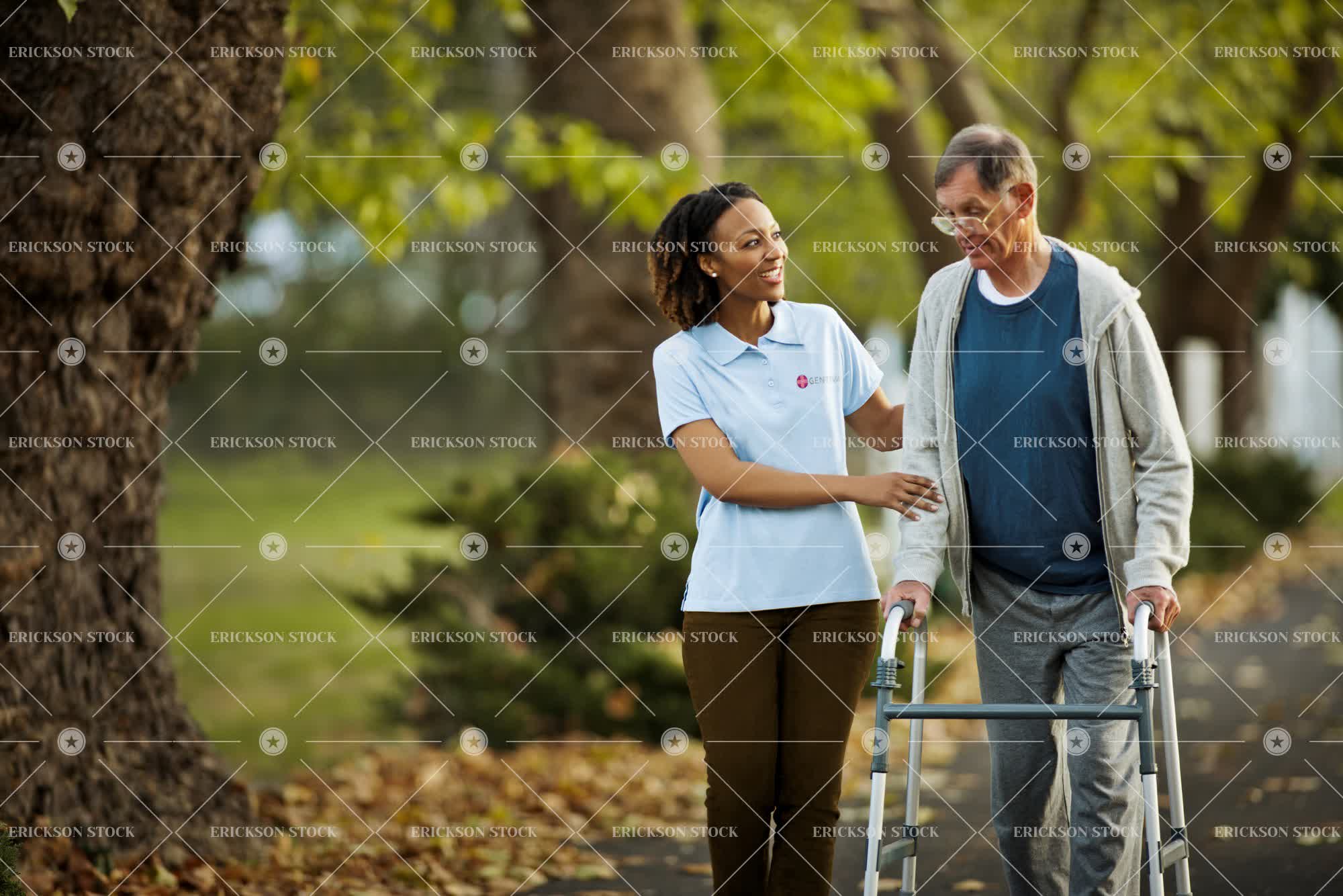 Tags adult, african american, aging, assist, assisted living, blue, brunette, care, casual clothes, caucasian, cheerful, comfort, console, conversation, copy space, delight, disabled, elderly, enjoyment, eyeglasses, female, footpath, footpaths, friend, friends, friendship, Fun, garden, gardens, glasses, gray hair, grey hair, grin, grinning, grins, Growth, handicapped, happiness, happy, having fun, health, healthcare, healthcare and medicine, hood, hooded, hooded shirt, hooded shirts, hoodie, hoodies, horizontal, joy, joyful, leisure, leisure activities, leisure activity, male, man, mature adult, medicine, mid adult, natural, nature, negative space, next to, nurse, nurses, nurture, Nurturing, old, outdoor, outdoors, outside, Park, parks, path, paths, pavement, pavements, people, person, physical impairment, polo shirt, polo shirts, public park, public parks, public space, public spaces, recreation, recreational pursuit, recreational pursuits, selective focus, senior adult, side by side, sidewalk, sidewalks, smile, smiling, speak, speaking, speaks, spectacles, Support, supportive, sweatshirt, sweatshirts, t-shirt, t-shirts, talk, talking, talks, tee shirt, tee shirts, three quarter length, together, togetherness, toothy smile, touch, Touching, Tree, tree trunk, tree trunks, trees, two people, uniform, uniforms, walk, walker, Walking, walking aid, walks, woman
