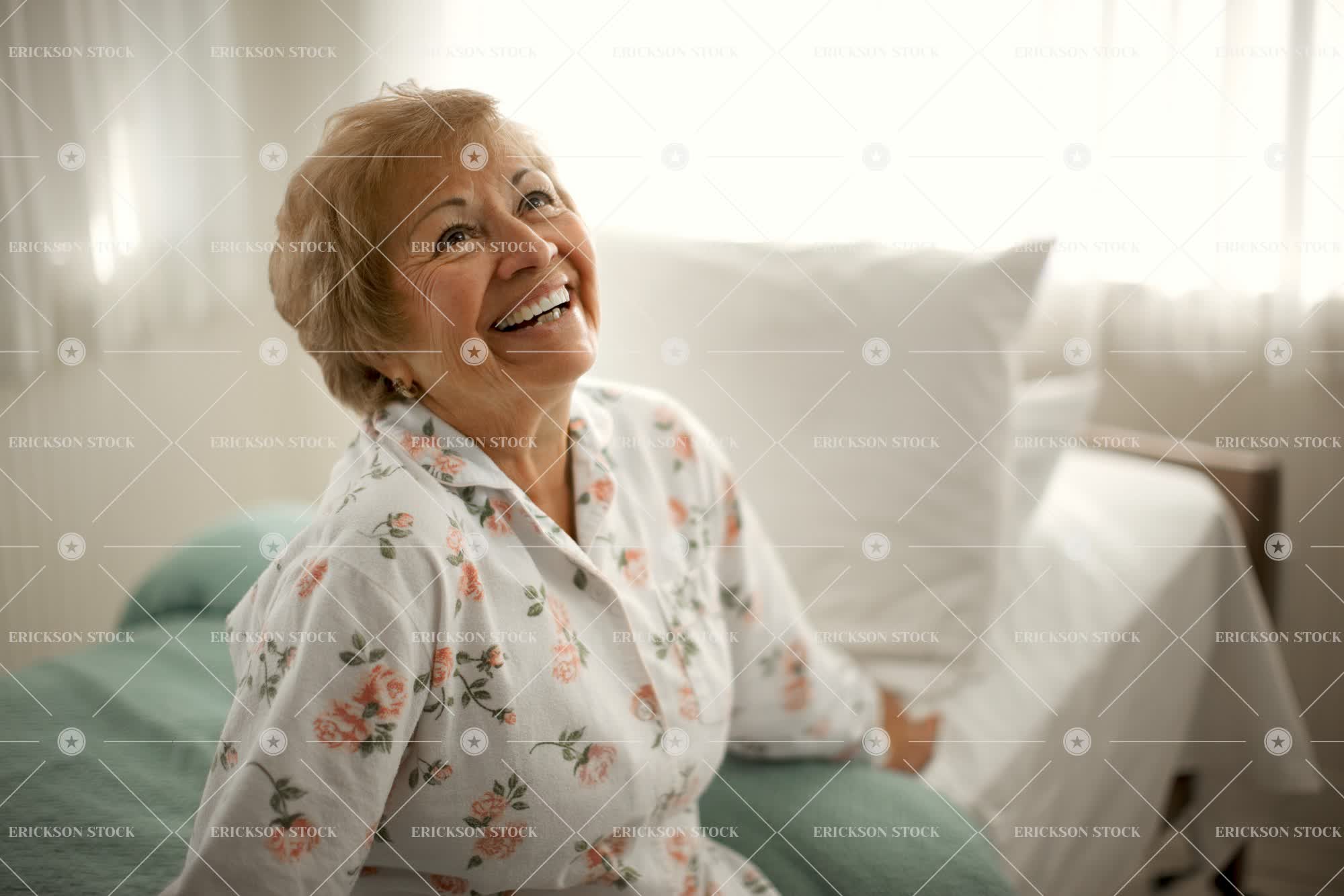 Tags achievement, adult, aging, assisted living, bedroom, blond, caucasian, cheerful, comfort, copy space, cushion, day, delight, earrings, elderly, enjoyment, excited, excitement, expressing positivity, female, floral, floral print, good news, grin, grinning, grins, half length, happiness, happy, head and shoulders, home interior, home interiors, horizontal, ill, illness, indoor, indoors, inside, joy, joyful, laughing, look up, looking up, mature adult, morning, negative space, old, one person, Pajamas, people, person, pillow, pillows, poorly, positive, positivity, pyjama, pyjamas, recovery, rest home, resthome, retirement home, selective focus, senior adult, sick, sickness, sit, sitting, Sleepwear, smile, smiling, success, successful, toothy smile, towhead, unhealthy, unwell, waist up, woman