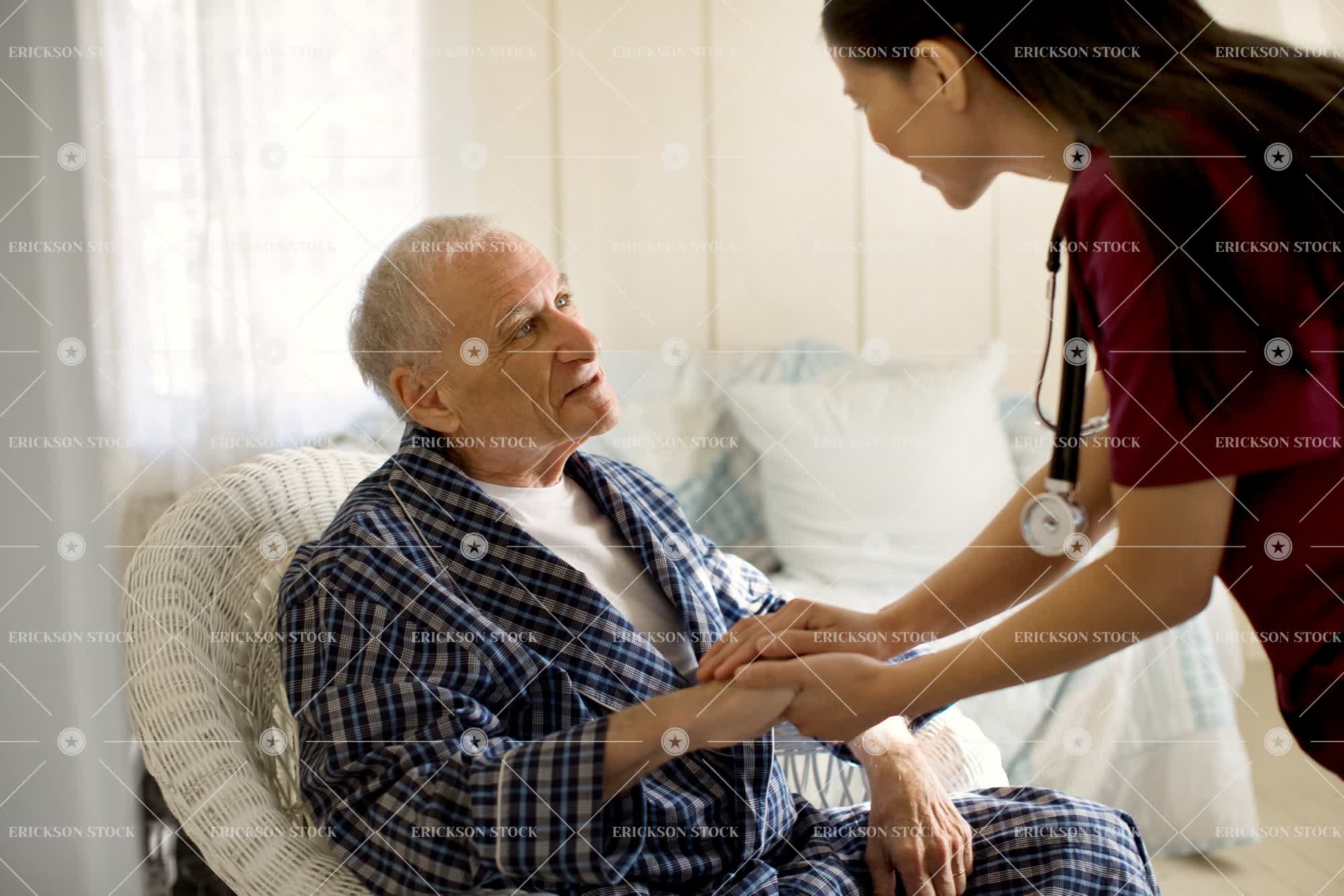 Tags adult, affectionate, aging, asian, assist, assisted living, bathrobe, bedroom, black hair, brunette, care, caucasian, cheerful, comfort, console, conversation, copy space, cropped, delight, dependency, elderly, enjoyment, explain, explained, explaining, explains, face to face, facing each other, female, geriatric, gray hair, grey hair, half length, hand in hand, happiness, happy, health, healthcare, help, helping, hold hand, hold hands, holding hand, Holding hands, home care, home interior, home interiors, horizontal, ill, illness, indoor, indoors, inside, joy, joyful, latin american, Living room, looking at each other, male, man, mature adult, medical equipment, medical instrument, medicine, mid adult, mixed race, mixed race person, negative space, nurse, nurses, nursing, old, Pajamas, part of, patient, patients, people, person, ponytail, poorly, problems, pyjama, pyjamas, recovery, reliant, rest home, resthome, retirement home, robe, scrubs, selective focus, senior adult, sick, sickness, Sleepwear, smile, smiling, speak, speaking, speaks, stethoscope, stethoscopes, talk, talking, talks, three quarter length, two people, unhealthy, uniform, uniforms, unwell, waist up, white hair, woman, young adult