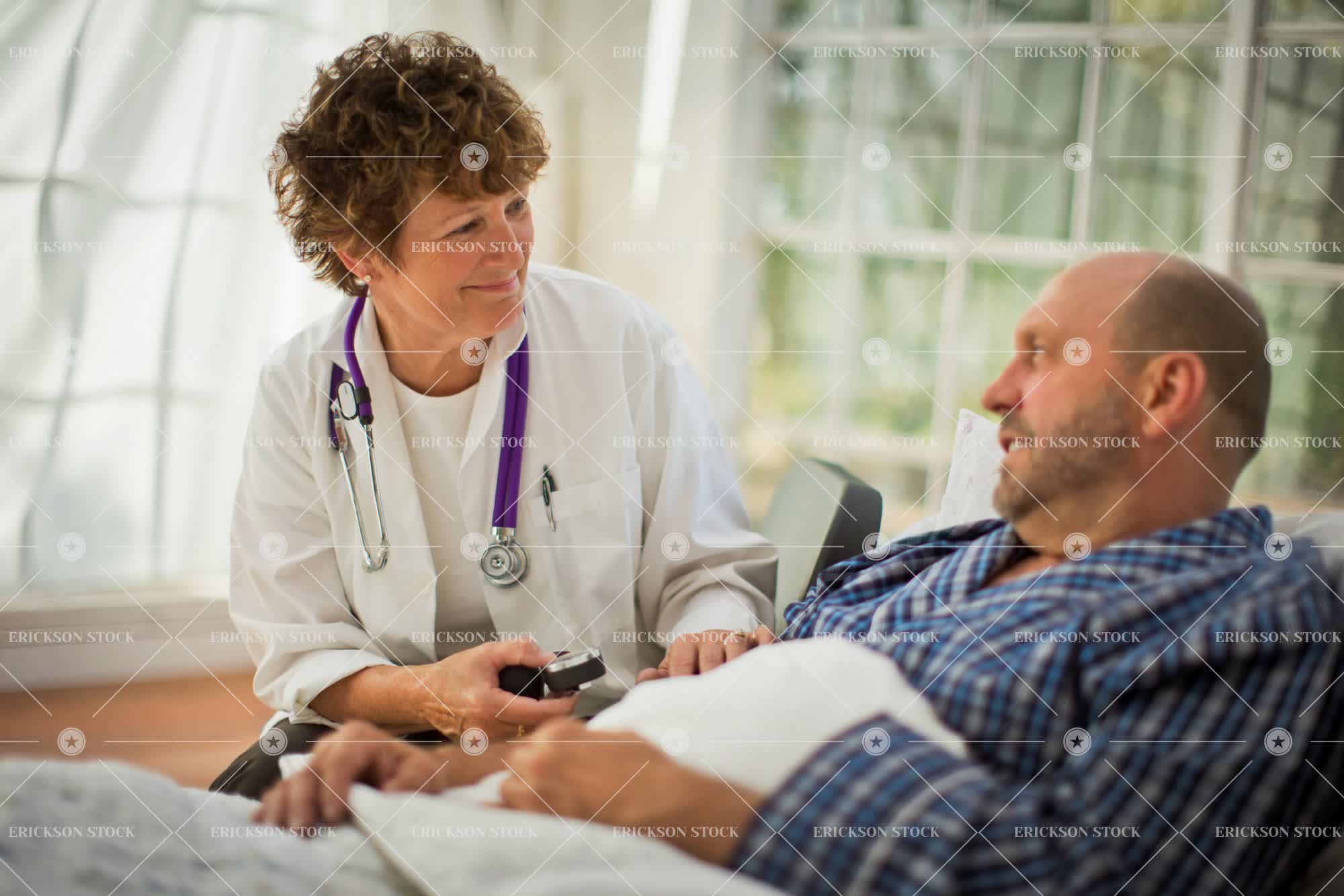 Tags adult, advice, assist, authority, beard, bed, bedroom, blanket, brunette, button down shirt, care, caucasian, checkered, collared shirt, comfort, computer, console, convalescent, conversation, copy space, dependency, doctor, duvet, expert, expertise, experts, explain, facial hair, female, half length, health, healthcare, help, helping, home interior, home interiors, hope, hopeful, hopefully, hoping, horizontal, hospital, hospital bed, hospital beds, hospitals, ill, illness, indoor, indoors, inside, lab coat, lab coats, laptop, laptop computer, lie down, Lying down, male, man, mature adult, md, medical, medical practitioner, medical practitioners, medication, medicine, medicine bottle, mid adult, negative space, Pajamas, patient, patients, people, person, physician, physicians, pill, pill bottle, pillow, pills, plaid shirt, poorly, practitioner, prescription, problems, reliant, selective focus, shirt, shirts, short hair, sick, sickness, sit, sitting, speak, speaking, speaks, specialist, specialists, stethoscope, stethoscopes, Support, supportive, talk, talking, talks, together, togetherness, two people, unhealthy, unwell, waist up, woman