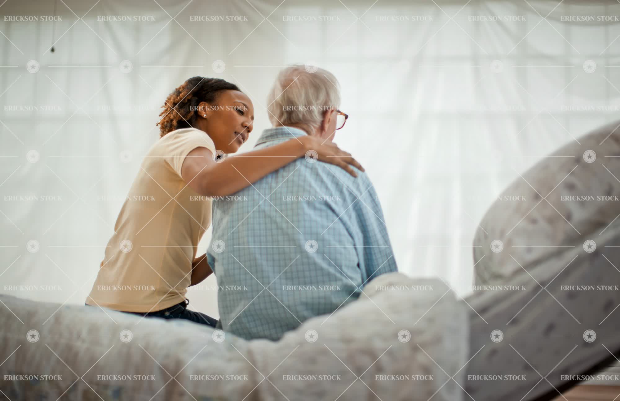 Tags adult, adversity, affectionate, african american, arm around, assist, back, bad news, bed, bedroom, blanket, brunette, care, caregiver, caucasian, comfort, comforter, console, contemplate, conversation, copy space, curl, cushion, dependency, despair, elderly, emotional stress, explain, explained, explaining, explains, eyeglasses, female, glasses, gloomy, gray hair, grey hair, half length, health, healthcare, help, helping, home interior, home interiors, horizontal, ill, illness, indoor, indoors, inside, job, jobs, male, man, mature adult, medicine, melancholy, mid adult, misfortune, negative space, next to, nurse, nurses, occupation, occupations, old, Pajamas, patient, patients, pensive, people, person, pillow, pillows, place of work, polo shirt, polo shirts, poorly, problem, problems, pyjama, pyjamas, rear view, recovery, reliant, rest home, resthome, ringlet, ringlets, sad, sadness, selective focus, senior adult, sick, sickness, side by side, sit, sitting, Sleepwear, speak, speaking, speaks, spectacles, stress, stressed, stressful, struggle, sympathetic, talk, talking, talks, thinking, thoughtful, together, togetherness, two people, unhappiness, unhappy, unhealthy, uniform, uniforms, unwell, waist up, woman, work, working, young adult