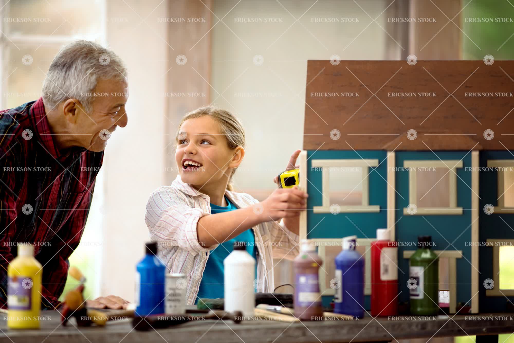 Tags adult, art, arts and crafts, blond, bond, button down shirt, carefree, casual, casual clothes, caucasian, checkered, cheerful, child, collared shirt, craft, create, delight, doll house, elderly, elementary age, enjoyment, equipment, family, female, Fun, garage, garages, girl, girls, grandchild, grandchildren, granddaughter, granddaughters, grandfather, grandfathers, grandparent, grandparents, gray hair, grey hair, half length, handcraft, handcrafts, handicraft, handicrafts, happiness, happy, having fun, hobby, home, home interior, home interiors, homes, horizontal, house, house interior, house interiors, houses, indoor, indoors, inside, interior, interiors, joy, joyful, kid, kids, leisure, leisure activities, leisure activity, lumberjack shirt, making, male, man, manufactory, manufacturing, mature adult, measure, measurement, measuring, measuring tape, mid adult, model house, model houses, mouth open, old, open mouth, paint, paints, people, person, plaid shirt, play, Playful, Playing, plays, ponytail, preteen, recreation, recreational pursuit, recreational pursuits, relationship, retired, retirement, selective focus, senior adult, shed, sheds, shirt, shirts, smile, smiling, studio, studios, table, tape measure, together, togetherness, towhead, two people, waist up, weekend activities, weekend activity, work bench, workbench, workroom, workrooms, works, workshop, workshops