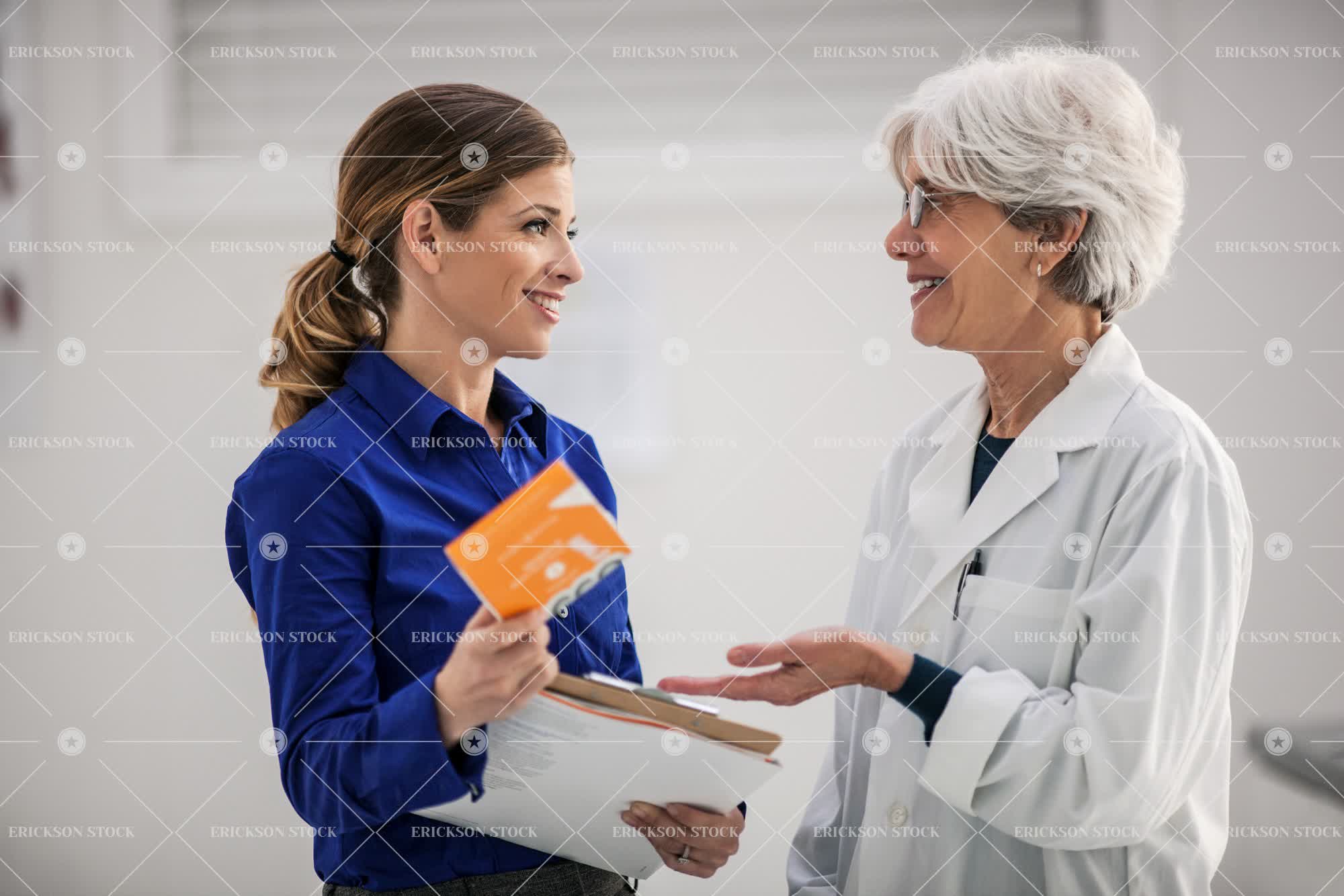 Tags adult, advice, ask, authority, box, brunette, button down shirt, caucasian, cheerful, clinic, clipboard, collared shirt, consult, conversation, copy space, delight, doctor, document, elderly, enjoyment, expert, expertise, experts, eyeglasses, face to face, facing each other, female, gesture, gestures, Gesturing, glasses, gray hair, grey hair, hair tied up, half length, happiness, happy, health, healthcare, hold, holding, holds, horizontal, hospital, hospitals, indoor, indoors, inside, job, jobs, joy, joyful, looking at each other, mature adult, md, medical, medical practitioner, medical practitioners, medicine, mid adult, negative space, occupation, occupations, old, paper, papers, paperwork, people, person, pharmaceutical, pharmaceuticals, physician, physicians, place of work, ponytail, selective focus, senior adult, shirt, shirts, smile, smiling, speak, speaking, speaks, specialist, specialists, spectacles, stand, standing, stands, talk, talking, talks, two people, waist up, well-dressed, woman, work, working, young adult