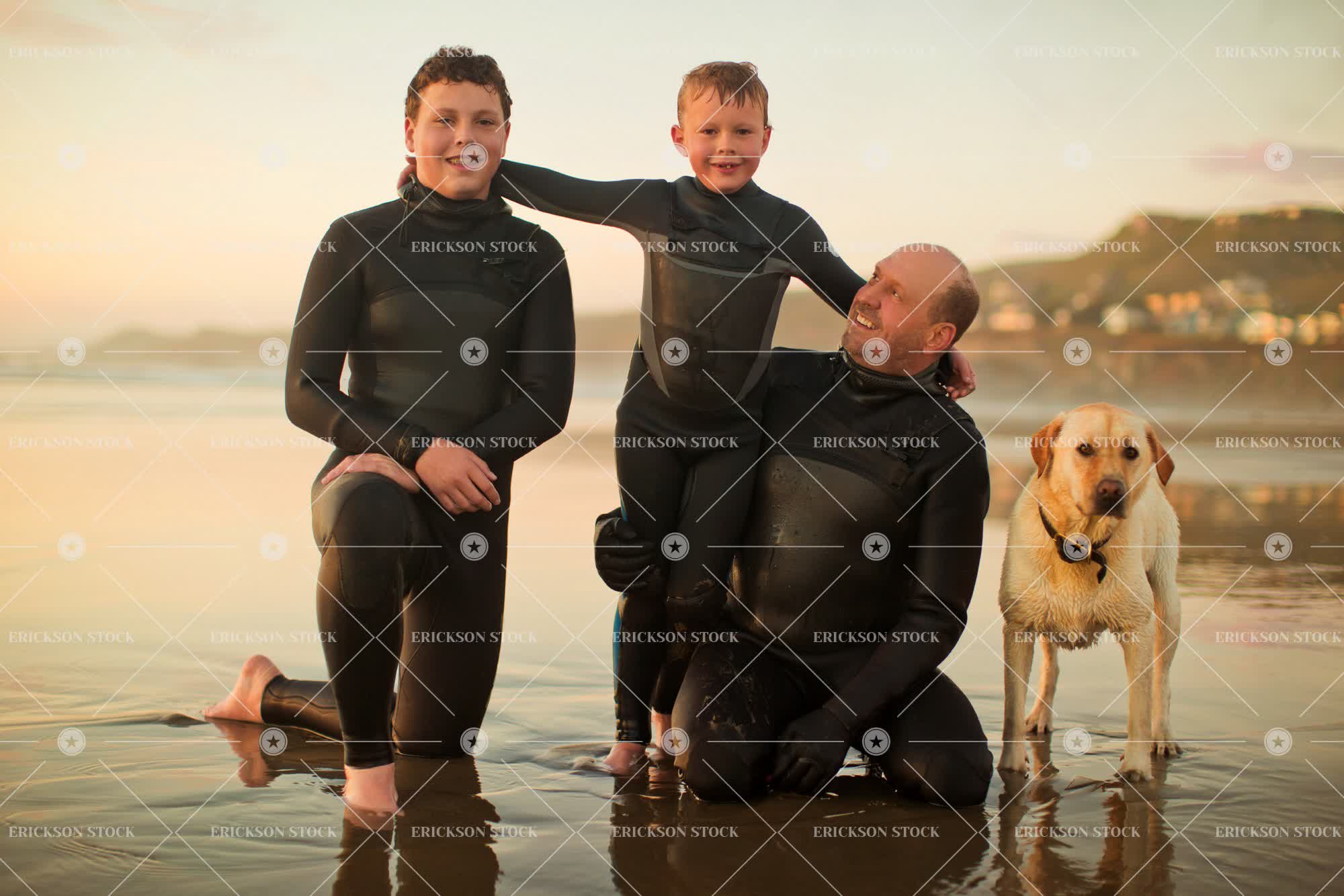 Tags adult, affectionate, animal, arm around, bathing suit, beach, blond, bond, boy, brother, brunette, cheerful, child, coast, day, delight, dog, domestic, dusk, elementary age, enjoyment, evening, Eye contact, family, father, full body suit, full body suits, full length, Fun, golden labrador, grin, grinning, grins, happiness, happy, having fun, holiday, holidays, horizontal, joy, joyful, kid, kids, kneel, kneeling, kneels, labrador, leisure, leisure activities, leisure activity, look at camera, looking at camera, male, man, mature adult, mid adult, non-urban, ocean, oceans, one animal, outdoor, outdoors, outside, parent, parents, people, person, pet, pets, portrait, Portraits, pre-adolescent, pre-adolescents, Pre-teen, pre-teens, preteen, preteens, recreation, recreational pursuit, recreational pursuits, sand, sandy, sea, seas, seaside, selective focus, shore, shoreline, shores, short hair, sibling, siblings, smile, smiling, son, sundown, sunset, swimsuit, teenage boy, teenager, together, togetherness, toothy smile, towhead, tween, twilight, Vacation, vacations, water, weekend activities, weekend activity, wetsuit, wetsuits